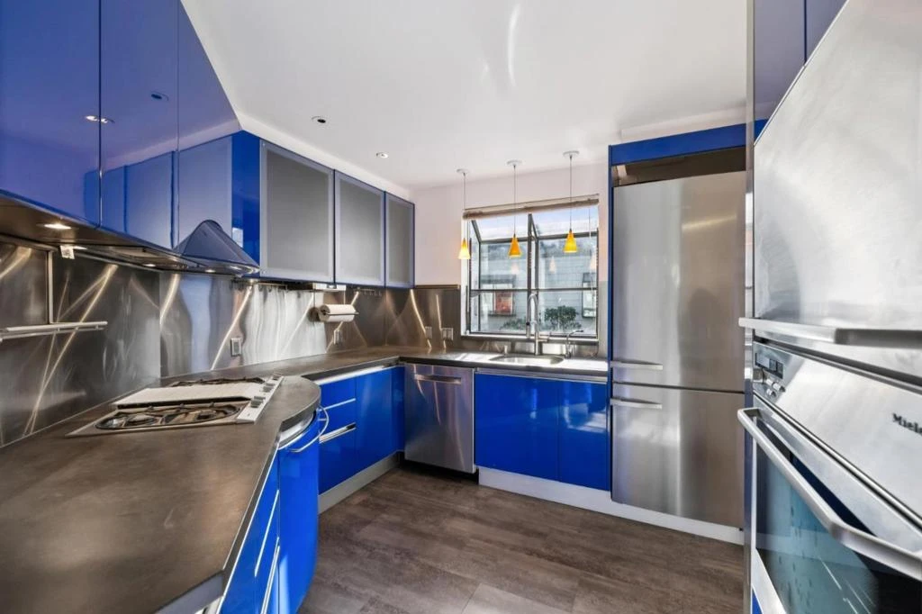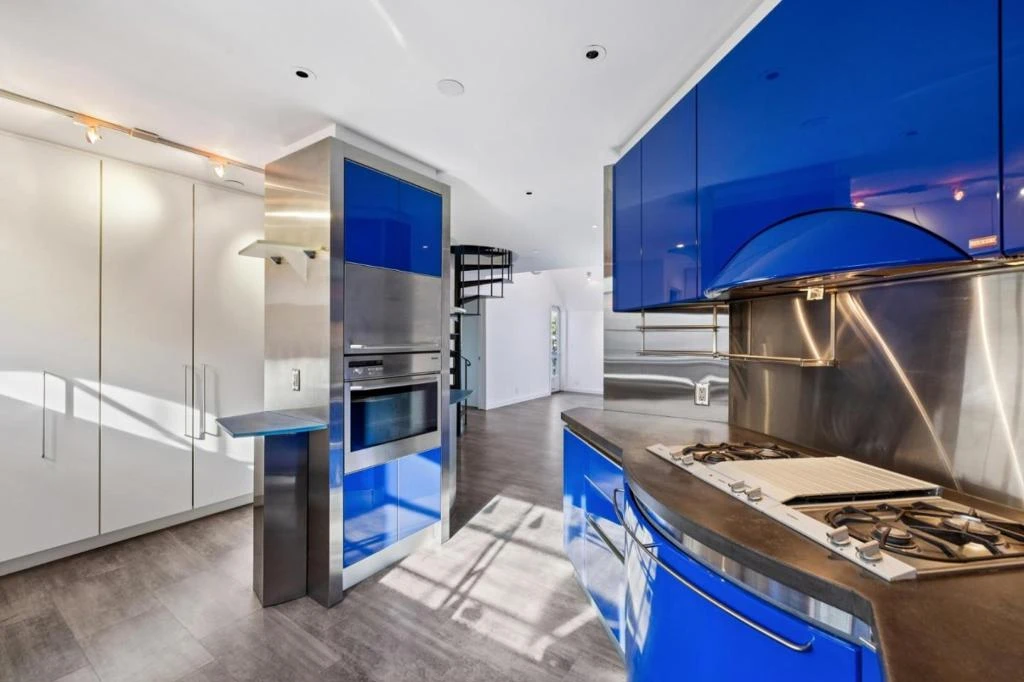 Sophisticated downtown Palo Alto townhouse.. This light-filled home features 2 bedrooms plus a loft space that can serve as an office, family room, or guest bedroom. Vaulted ceilings, an exceptional roof terrace, and a balcony create a bright, open atmosphere. The custom Italian Dream Blue Snaidero kitchen showcases concrete counters and premium stainless-steel appliances, featuring a 4-burner gas Gaggenau cooktop with grill and a Miele convection oven seamlessly blending style and function. Remodeled bathrooms, radiant heated floors, custom closets, and thoughtful storage maximize convenience. Enjoy in-unit laundry, two parking spaces with EV charger, and two storage units. Located close to Stanford University and top-rated Palo Alto schools, this residence combines modern design with an unmatched location.