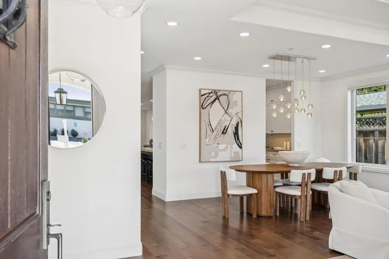 Gorgeous 5-year custom home in prime Midtown location featuring 4 beds/3.5 baths. Classic Mediterranean exterior with a bright, open concept. Living room with gas fireplace and backlit coffered ceilings; formal dining with tray ceiling. Chefs' kitchen with Quartzite countertop, custom cabinetry, Thermador appliances, pantry, and large island, opening to the family room and portico. Upstairs primary suite with walk in closet, dual sinks, tub, and separate shower; two additional bedrooms. Main level en-suite ideal for guests or office. Hardwood floors throughout, Porcelanosa finishes, 2 zone HVAC, on demand tankless water heater, Nest, Ring, EV charger, and solar ready. Expansive porch and lawn area for outdoor living. Steps to El Carmelo and Hoover Park; minutes to Stanford; close to Meta, Google, Microsoft and other major tech companies; easy commute with Caltrain, 101. Top-rated Palo Alto schools.