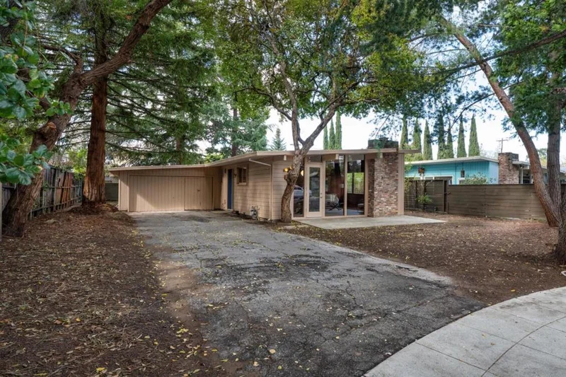 Eichler style home with high ceilings at the end of a quiet cul-de-sac // Ample sized lot with mature trees // Enjoy as-is or update, expand, or build new // Lot will accommodate 2826 sf of floor area plus ADU // Proximate to shopping: Grocery Outlet [0.6 miles] and Charleston Center [1.0 miles] and parks: Robles Park [0.2 miles] and Mitchell Park and Library [0.9 miles]