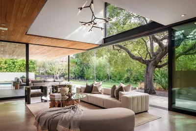 Award-winning architecture by Aidlin Darling Design defines this exceptional home in Palo Alto's sought-after Crescent Park neighborhood. Designed to celebrate the surrounding coastal live oaks and redwoods, the home features a pivoting entry door beside a soaring two-story wall of glass revealing afloating reclaimed-wood staircase illuminated by sculptural Lindsey Adelman lighting. Radiant-heated honed concrete and hardwood floors provide comfort throughout. A dramatic cedar-clad architectural wall conceals extensive customized storage while maintaining clean architectural lines. The great room features Fleetwood retractableglass walls that stack without corner obstruction, opening to a large terrace beneath the cantilevered upper level. The sleek kitchen offers ebony cabinetry, marble surfaces, island and peninsula seating, and Fleetwood sliding glass doors to a barbecue terrace beneath the oak canopy. A fitness center, media room, & office are privately positioned off the great room and offer the flexibility to convert to a main-level guest suite. Landscaped grounds include lawn, native plantings, pool, in-ground spa, outdoor shower, and barbecue center. Located just one-half mile from University Avenue shops & restaurants, and served by acclaimed Palo Alto schools.