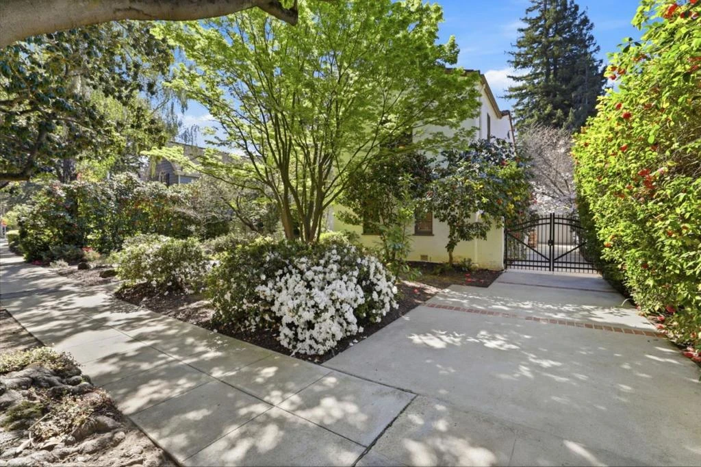Beautifully maintained Spanish Colonial Revival on a private, tree-lined street in one of Palo Altos most desirable neighborhoods. Situated on an expansive 12,587 sq ft lot, this approx. 3,763 sq ft home offers 5 bedrooms and a detached studio ADU with kitchenette and full bath, ideal for guests, extended family, or office use. Features include hardwood floors, high ceilings, crown moldings, updated electrical, forced air heating with 2 zones, elevator access to main and upper levels, EV charging, AT&T Fiber, and an owned 24-panel solar system. Remodeled kitchen with Wolf range, Sub-Zero refrigerator, and Bosch dishwashers. Spacious backyard with mature landscaping, pool and spa with solar heating, covered patio, and multiple entertaining areas. 1 car garage plus ample driveway parking. Pet friendly and professionally managed. Close to downtown Palo Alto, Stanford, parks, and Highway 101. Top-rated schools include Duveneck Elementary, Greene Middle, and Palo Alto High (tenant to verify).