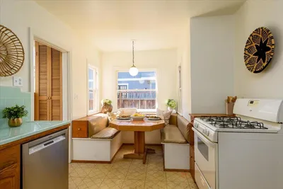 Welcome to this charming and character-filled home nestled in the heart of College Terrace, just moments from the vibrant shops, cafes, and restaurants along California Avenue. This inviting 3-bedroom, 2-bath residence blends timeless appeal with everyday comfort, featuring beautiful hardwood flooring throughout and a thoughtfully designed layout. The spacious living room, anchored by a cozy wood-burning fireplace, flows seamlessly into a formal dining room perfect for both relaxed evenings and elegant entertaining. The eat-in kitchen offers a delightful built-in breakfast booth, along with a separate pantry and dedicated laundry room for added convenience. The serene primary suite provides a private retreat with dual sinks, a luxurious soaking tub, and a separate stall shower. Step outside to a charming yard ideal for barbecues and outdoor gatherings, while a detached two-car garage offers ample parking and storage. With its warmth, functionality, and unbeatable location in one of Palo Altos most sought-after neighborhoods, this home is a rare opportunity to enjoy the very best of College Terrace living.