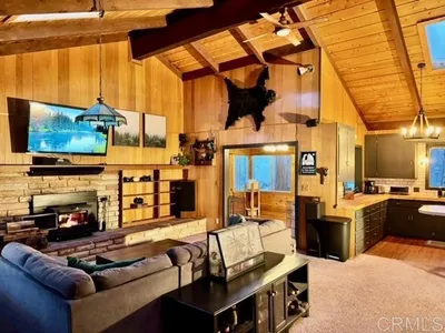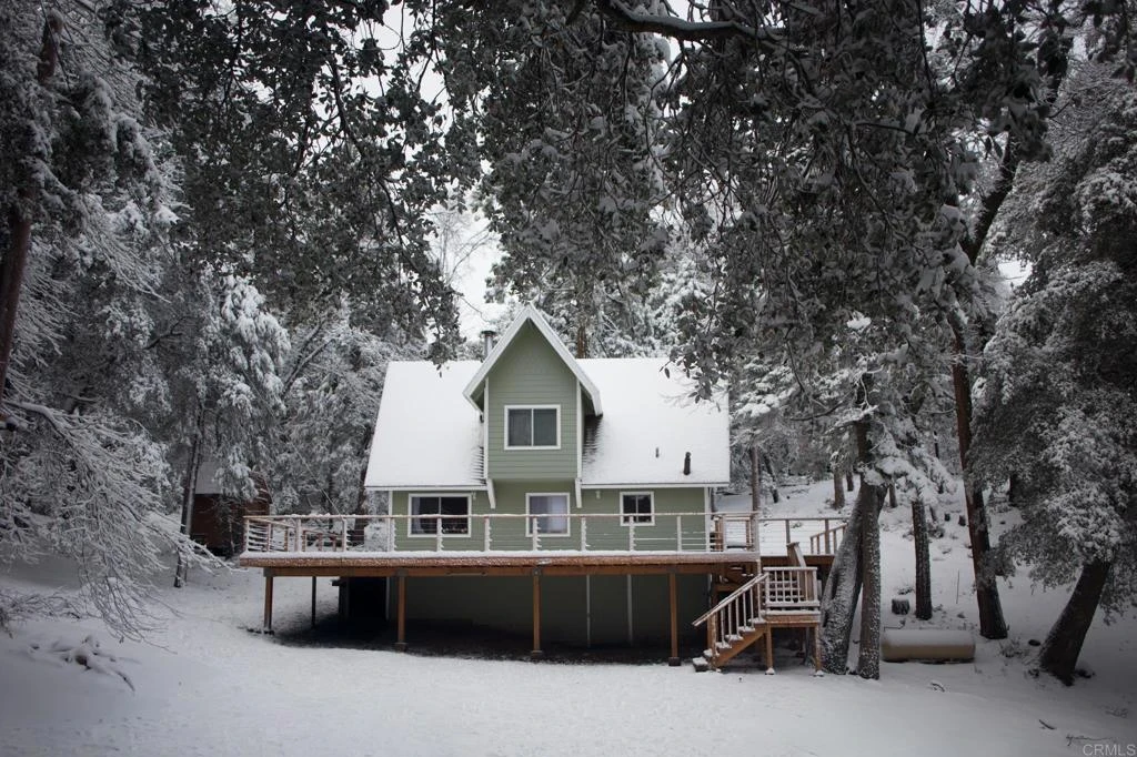 Loved and enjoyed in every season, newly remodeled mountain cabin offers authentic comfort for both full-time and weekend living. Step inside to a warm knotty pine interior, complemented by new flooring, a highly efficient wood stove with supplemental propane heat, and refreshed bathrooms featuring acacia countertops. The flexible layout provides three to four bedrooms with multiple sleeping options for family and guests. The walk-out basement includes a workshop, along with a 10x12 Tuff Shed and wood shed, offering excellent storage and utility. Year-round, the property functions as a natural playground, with prime sledding hills and established paths suited for snowboarding. In warmer months, those same routes become peaceful hiking trails. Enjoy true mountain living with space, quiet, and changing seasons, all while remaining distinctly Southern Californian. Snow on the property and surfing at the coast on the same day is entirely possible. From the deck, take in direct views toward the iconic dome of Palomar Observatory, High Point Lookout and snow-capped Mt. San Jacinto. Afternoon shutter openings are visible in the distance, and nighttime brings dark skies ideal for stargazing. This is not a staged retreat, but a property that has been well maintained, used and appreciated, offering privacy, natural beauty, and a meaningful connection to land and sky.
