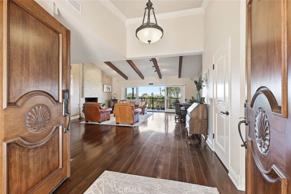Experience the pinnacle of coastal living in this move-in-ready, ocean view retreat, where privacy, tranquility, and breathtaking scenery are everyday luxuries. Grand double doors welcome you into an expansive, light-filled open floor plan designed for both refined entertaining and effortless daily living. Walls of glass showcase sweeping views from nearly every room, seamlessly connecting the indoors to the outdoors. A wraparound view deck features a built-in outdoor kitchen and retractable, lighted awning—ideal for entertaining. Designed for true single-level living, the main floor includes an oversized primary suite with balcony access, dual walk-in closets, and a spa-inspired bath with freestanding soaking tub and dual vanities. Just steps from the main living areas, the heated pool and spa extend directly off the main level, creating a serene, resort-style sanctuary for lounging, swimming, or starlit relaxation. The lower level offers exceptional comfort and privacy for guests, featuring a second primary bedroom with en-suite bathroom, two additional spacious bedrooms with a Jack-and-Jill bath, and versatile bonus rooms perfect for a home office, yoga studio, gym, or playroom. Whether hosting large gatherings or enjoying intimate family movie nights, this home effortlessly accommodates every lifestyle. Additional highlights include a three-car garage, solar panels, EV charger, wine cellar, fiber-optic internet, warm wood flooring, and custom finishes throughout. Thoughtfully designed and impeccably maintained, this is a home where luxury meets ease—simply move in, unwind, and begin living your coastal dream.