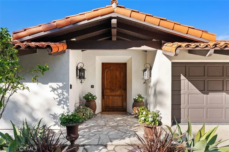 A rare opportunity to own one of Malaga Cove’s most compelling view properties, this custom, Spanish-inspired estate captures panoramic Queen’s Necklace and white-water ocean views while enjoying exceptional privacy adjacent to parkland within Palos Verdes Estates. Completed in 2025, the remodel blends timeless architecture with modern infrastructure and artfully appointed finishes, including white smooth plaster walls with a Venetian wax finish, expansive 8-foot bifold doors spanning 15–18 feet, custom-sized milled hickory pecan herringbone flooring, limestone floors in Versailles and herringbone patterns, and solid glazed alder cabinetry with extensive built-ins. Designed as a true culinary pavilion, the ocean-view kitchen opens to the family room and sits adjacent to the dining room for seamless entertaining. It features premium appliances, dual sinks, dual dishwashers, two refrigerator/freezers, including a 60-inch commercial unit, and generous prep space. A fully equipped dirty kitchen supports effortless hosting, while the exterior kitchen — complete with built-in smoker/BBQ, Argentinian grill, and a 60-inch wood-fired pizza oven — extends the experience outdoors. The dining room showcases a striking glass-encased wine cellar with a cellar pantry and abundant wine glass storage, opening to a patio with a gas fire feature overlooking the coastline. A beautifully appointed living room with a fireplace provides refined comfort nearby. The lower level offers a private retreat with a luxurious primary suite capturing breathtaking panoramic coastline vistas. The spa-inspired bath includes an 8-valve shower system with an oversized 8x24-inch main shower head and additional wall heads, plus warm flooring throughout. A custom primary closet completes the suite. Additional bedrooms provide privacy for family or guests. Below, a serene spa overlooks the coastline and a lush orchard featuring avocado, cherry, plum, apricot, apple, Meyer lemon, Baer lime, mandarin, blood orange, Buddha’s hand, Seville orange, pomegranate, fig, nectarine, peach, donut peach, guava, and bay leaf. A private path leads directly to the walking trail below. With fully upgraded water, sewer, gas, electrical, and heating systems, upsized water lines, and exceptional additional storage, this residence delivers rare views, privacy, craftsmanship, and elevated coastal living.