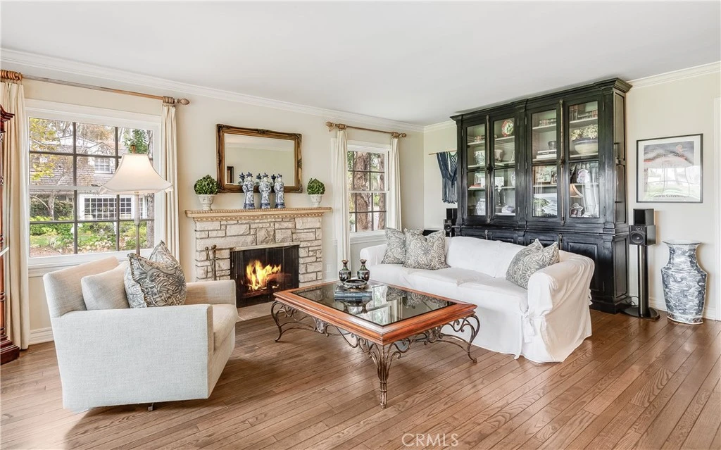 Quintessential Cape Cod in the heart of Valmonte’s beloved Grove! Situated on a generous corner lot with a large, grassy front yard, this timeless home blends classic East Coast character with modern livability. Sunlight pours through oversized picture windows, highlighting rich hardwood floors and an inviting, traditional layout. The expansive living room features a handsome stone fireplace and flows naturally to the formal dining room with elegant wainscoting. The stunning chef’s kitchen showcases custom cabinetry, marble countertops and stainless appliances, and opens directly to the warm, comfortable family room with a charming brick fireplace. A built-in breakfast booth is perfectly positioned for casual meals and morning coffee. French doors lead to a large brick deck and a spacious backyard complete with an outdoor fireplace. The bonus room off the backyard is currently used as a gym. Upstairs, a traditional staircase leads to four generous bedrooms and three full bathrooms. The luxurious primary suite offers a vaulted ceiling, its own fireplace, and a serene sitting room; your perfect retreat. Just minutes from Palos Verdes Golf Club, Malaga Cove Plaza, and the beach, this classic Valmonte home offers the best of coastal living in one of the Peninsula’s most sought-after neighborhoods.