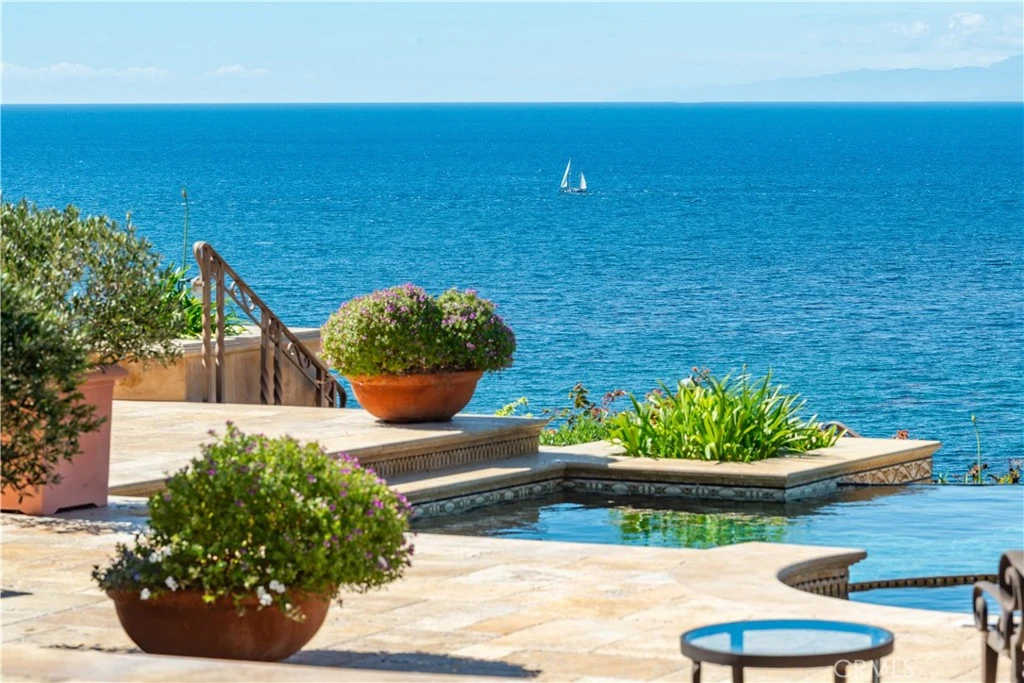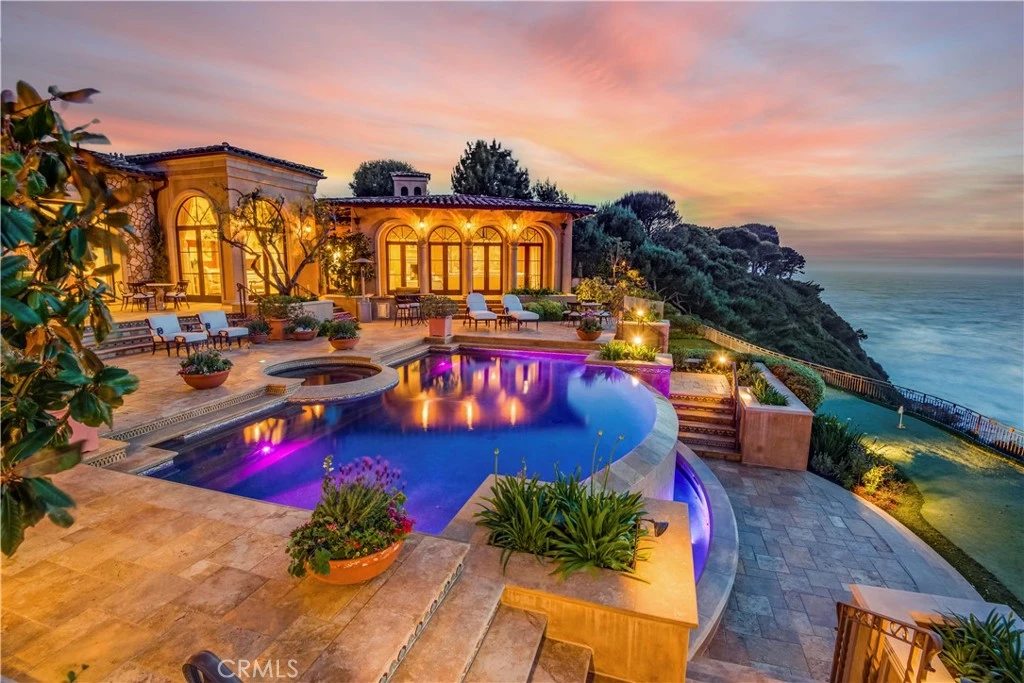 Spectacular, Rare, and Majestic! A once-in-a lifetime estate that welcomes you to the coastline of Palos Verdes Estates, overlooking Lunada Bay at Resort Point and the Pacific Ocean. A masterful design with meticulous details highlights this Italian-inspired Mediterranean Villa. Custom built, the property's elegant yet comfortable design focuses on indoor/outdoor living rivaling many 5-star resorts and showcasing the stunning surf, sunset and coastline views from all major living spaces. The heart of the home is the stunning living room anchored with a majestic floor to ceiling dual fireplace and accented with disappearing sliding doors that open to a breathtaking infinity pool and spa that flow seamlessly to the ocean. The open floor-plan is ideal for entertaining and offers a wonderfully themed Monkey Bar complete with refrigerator and sink. A media room just off the kitchen offers a cozy environment for family movie night. The expansive rec room is perfect for arcade gaming, video entertainment, and shooting pool, with an adjacent wine cellar. The stunning kitchen includes an expansive butlers pantry and prep area. The Primary Suite is the highlight of the bedroom wing with a unique glass floor entry overlooking a Koi pond. This luxurious suite includes whitewater views, dual fireplace, sitting area, expansive walk-in closet and spa-style bathroom with jetted tub and a walk in oversized shower. The outdoor setting is unrivaled and awe-inspiring and takes you to another world while relaxing on the beautifully landscaped patio with an inviting pool and the soundscape of the rhythmic waves below. The final touches of this spectacular estate are a secluded gym/sauna room, an oversized garage for the car enthusiast with ample storage, and an automated gated entrance. A truly private and grand world class oceanfront estate.