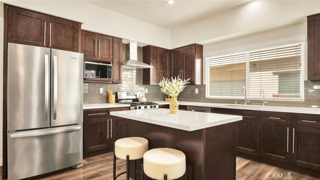 Beautifully upgraded 4BD 3.5BA newer construction in a private gated community! Centrally located near shopping, dining, public transit, and major freeways. This two-story home features an open floor plan with a spacious family room, recessed lighting, and abundant natural light from large windows and a skylight. Gourmet U-shaped kitchen with oversized island, stainless steel appliances, and custom pantry shelving. Upstairs primary suite offers a private balcony, fireplace (rare), dual sinks, and a large walk-in closet with custom organization. All bedrooms feature mirrored closet doors and ceiling fans. Upgrades include: Fully covered Solar panels equipped, whole-house water softener + RO system, upgraded lighting/switches, and glass shower enclosures. Low-maintenance backyard with concrete patio—perfect for entertaining. 2-car attached garage with epoxy flooring and overhead storage. Refrigerator, washer, and dryer included. Quiet, secure community near parks and recreation.