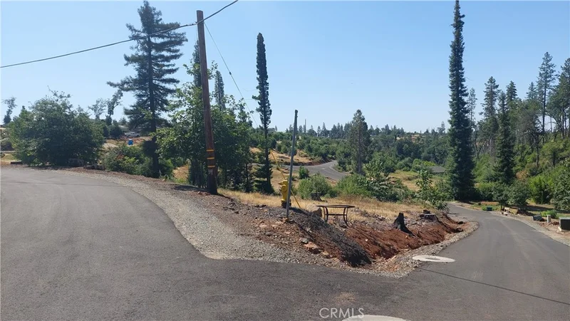 This .42 acre irregular shaped lot is located in close proximity to Clark Road where stores, banks, restaurants and other services are located. The lot will need work to create a level building pad due to the slope of the lot. There is a good view from this lot looking South and there is a stream at the back of the lot. The lot is previously undeveloped except for the water supply from the Paradise Irrigation District that has and Active Account. The Customer Backflow Device does need installed prior to using the water. The Town of Paradise Building Resiliency Department will need to determine what kind of new septic system will need installed on the lot. The electricity is available at the street and has been run under ground. The streets have newer pavement. The Building Resiliency Department advised this lot must be surveyed prior to applying for permits. The lot is subject to Impact Fees due to being new construction on an undeveloped lot.