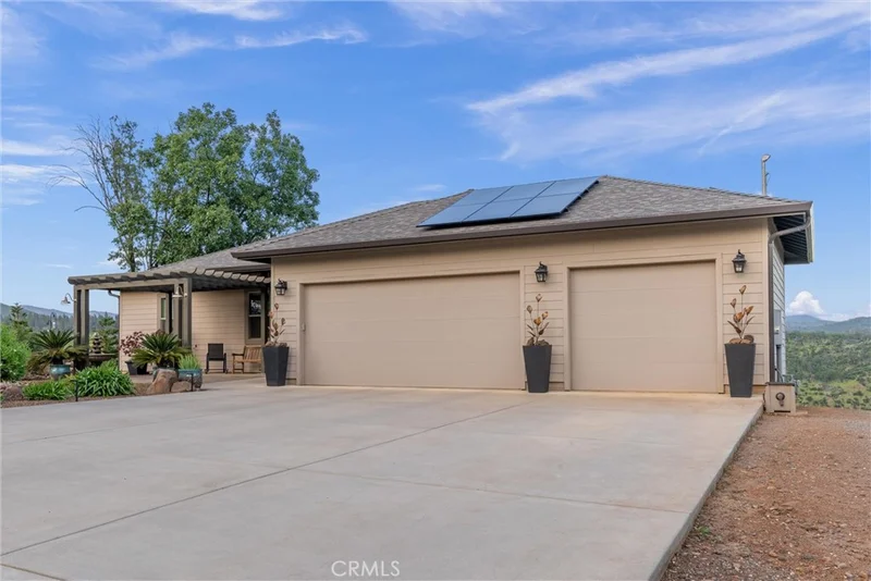For the discerning buyer seeking something exceptional, here is a rare gem boasting an unparalleled view. Crafted to maximize the breathtaking vistas and sounds of the Feather River canyon, complete with its cascading river view and connection to Lake Oroville, this residence offers a singular experience. Upon arrival, you're greeted by front landscaping in which every aspect is meticulously curated to maintain a harmonious theme. The landscaped lawns benefit from an underground watering system ensuring complete coverage. Inside the open living space you'll enjoy a floor to ceiling fireplace complimenting the floor to ceiling view. The spacious kitchen features a sizable island with stone counters, shaker cabinets, subway tile backsplash, and a large pantry. The expansive 8x12 sliding glass door integrates indoor and outdoor living, leading to a large deck framing the panoramic views. With 1,785 square feet of living space, this home is currently set up as a 2 bedroom plus office, but could easily be used as a 3 bedroom residence. The property also has an insulated 3-car garage with extra-deep bay and 220v wiring for a backup generator, additional side parking, and Owned Solar. Situated in a prime location, this home directly overlooks the West Branch of the Feather River, offering a tranquil ambiance year-round. The composite decks ensure lasting beauty, with multiple outdoor spaces, including a shaded lounge under the main deck, an outdoor shower with ambient solar lighting, a sitting area beneath a pergola, and an observation deck over the canyon. Indoors, luxury vinyl plank flooring with soft underlayment provides comfort & style throughout. The en suite bedroom boasts canyon views, deck access, and a bathroom adorned with a large walk in shower, complete with a dual sink vanity and an extra-deep, fully organized walk-in closet. Abundant storage options further enhance the home's functionality, while the oiled bronze front door with inset ironwork and rain glass panel adds to its curb appeal. Recent updates include new, high quality interior and exterior paint throughout. For those considering rental or vacation opportunities, the property presents potential as a VRBO or second home, especially if purchased furnished. With landscape lighting illuminating the grounds, picture-perfect evenings outdoors are guaranteed. From the meticulously designed interior to the captivating outdoor spaces, this home offers a truly enchanting living experience.