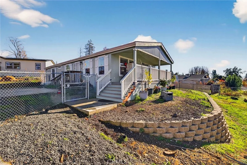 Tucked away at the end of a cul-de-sac, this beautiful 3-bedroom, 2-bath home is full of upgrades and room to let your creativity soar. Step inside to a spacious living area with recessed lighting and a ceiling fan, seamlessly flowing into an open-concept kitchen. Admire the authentic tile backsplash, large island, generous storage, and gas stove—plus, the refrigerator stays! Down the hall are two guest bedrooms with ample closet space, and a large laundry room with extra storage or space for a deep freezer. Additional hallway cabinets provide even more storage. The guest bath offers a tub/shower combo for versatility. The primary suite boasts a walk-in closet, ceiling fan, and bathroom with a walk-in shower, dual sinks, lighted mirrors, and elegant tile work. Outside, a sliding glass door leads to a spacious composite deck with stunning sunset views. The fenced backyard includes a drive-through gate, and the property is enhanced with orange, peach, maple, redwood, and oak trees. With newer gutters, underground utilities, extra parking, and RV hookups, this home truly has it all.
