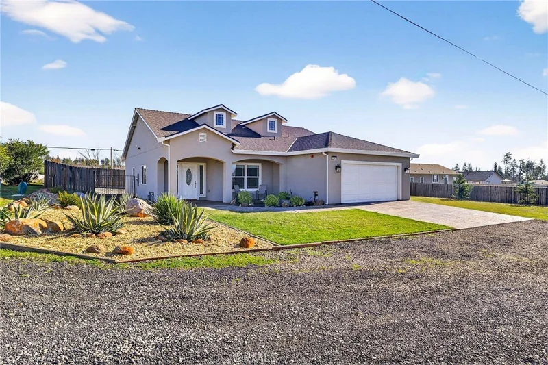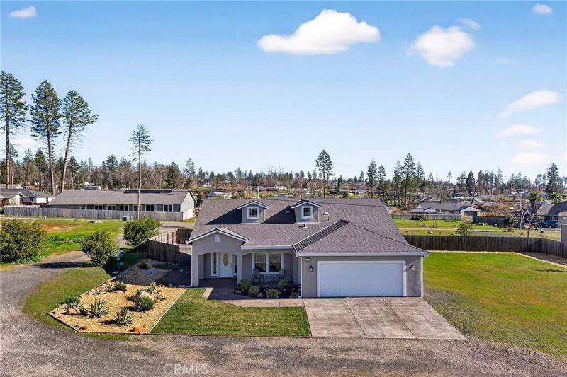BEAUTIFUL 2022 CUSTOM-BUILT HOME NEAR BILLE PARK!! Welcome to this stunning, custom home offering 3 bedrooms plus a den, 2 bathrooms, and 1,726 sq. ft. of thoughtfully designed living space. From the moment you arrive, you’ll be impressed by the charming landscaping and textured, painted concrete walkway leading to the front entrance. Step inside and instantly feel at home with soaring 10-foot ceilings and an inviting, open layout. This home features both living and family rooms, plus a versatile den—perfect for a home office, flex space, or potential 4th bedroom. The kitchen is a showstopper, showcasing beautiful marble countertops throughout, a large center island, stainless steel appliances, breakfast bar, and a cozy dinette area—ideal for everyday living and entertaining alike. Retreat to the private primary suite featuring 10-foot ceilings, a spacious walk-in closet, and a well-appointed ensuite bath carrying on the marble counters throughout. Enjoy outdoor living with a concrete back patio that opens to a fully fenced backyard, complete with a cross-fenced and gated area—perfect for pets, entertaining, or creating separate outdoor spaces. There’s still plenty of room to add your own personal touches and design the backyard oasis of your dreams. Additional highlights include a two-car garage with finished floors, ample RV and boat parking along the side of the home, and the convenience of a fire hydrant located just a few feet from the property. With new construction continuing throughout the neighborhood, this is your chance to be back on the Ridge in a spacious, beautifully built home. Enjoy a nice end-of-land location that is just minutes to downtown Paradise and only 12 miles to Chico. Best of all, the home is within walking distance to the beautiful Bille Park, offering two playgrounds, BBQ areas, and scenic walking trails with stunning canyon views. Don’t miss this incredible opportunity—schedule your showing today!