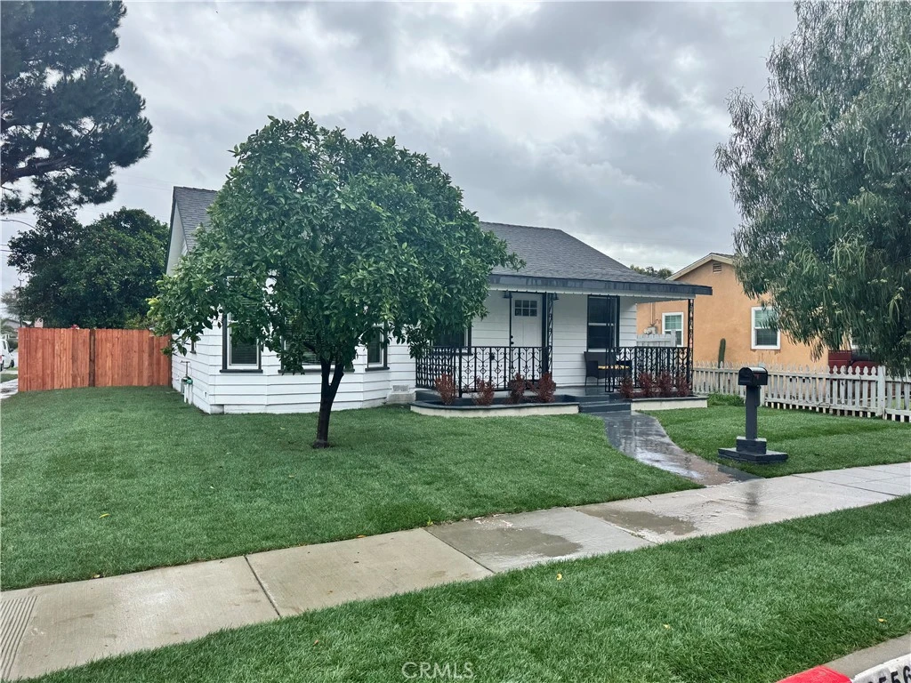 Welcome to 6556 San Vicente Street in Paramount, CA. This beautifully renovated single-story home has been thoughtfully remodeled from top to bottom. Upgrades include brand-new plumbing, electrical wiring, electrical panel, new dual-pane windows, new laundry area, new drywall, HVAC system, and a stunning new kitchen featuring stainless steel appliances and sleek quartz countertops. The home offers two spacious bedrooms plus an office and one and a half bathrooms. A charming, inviting covered patio features a warm wood-plank ceiling, spacious concrete flooring, and a private fenced setting ideal for outdoor entertaining. Sitting on a generous corner lot, the property also features a two-car detached garage and new wood fencing, offering both privacy and functionality. A true turnkey opportunity with modern finishes and pride of ownership throughout.