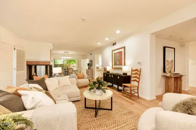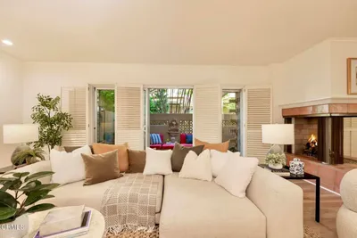 A Study in Mid-Century Modern Set quietly at the rear of a classic South Orange Grove enclave, this single-level residence reflects the enduring principles of mid-century modern architecture: clarity of design, effortless flow, and a deep connection to the outdoors.Clean horizontal lines and an open, intuitive floor plan create a sense of calm from the moment you enter. The main living space unfolds with purpose, anchored by a period fireplace and framed by walls of glass that dissolve into two private patios. Light, air, and garden views become part of the architecture itself, itself an essential hallmark of the era.The great room has a living and dining area that open to the private patios. The adjacent kitchen with breakfast bar flows into the family room, integrated yet distinct, offering flexibility. Privately situated, the primary suite is a quiet retreat-generous in scale, with direct access to its own secluded patio, where the indoor-outdoor dialogue continues. The large walk-in closet & ensuite bath are good sized. The laundry is tucked away on the enclosed patio. The second bedroom is thoughtfully set apart, allowing for guests, a workspace, or creative use without compromise.What sets this residence apart is not only its rare single-level layout, but the way it lives: uncomplicated, intentional, and connected. Two outdoor spaces extend the experience beyond the walls, while the tranquil setting enhances the sense of privacy and retreat.Nearby is the glorious pool with separate full sized cabanna that can be reserved for private parties. Complete with kitchen, living & dining area plus a library & 3/4 bath, this extends the living space beyond the unit itself. Separate HVAC and water heater are easily. accessible. The complex has excellent management. There are two parking places for this unit: one is covered and includes storage while the second is uncovered. Ease of access off Columbia. This is mid-century modern living as it was meant to be: refined, functional, and timeless.