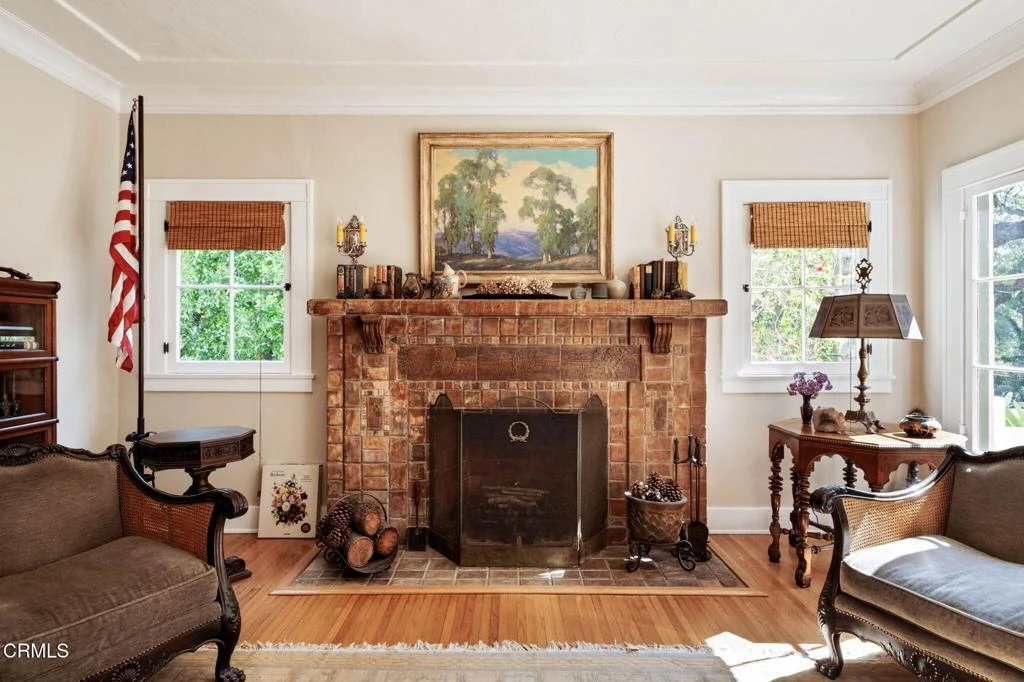 Built in 1924, this single-story Spanish Colonial home is situated next to the historic 1885 Dane House and fronts the Landmark District's most coveted street in the Historic Highlands, a neighborhood defined by majestic oak-lined avenues and architecturally significant properties. This beautiful home reflects the enduring craftsmanship of the era with an arched entry, graceful Palladian windows, high ceilings, and hardwood floors throughout. Original vintage lighting, doors, and hardware have all been thoughtfully restored and preserved. At the heart of the home, a Batchelder tile fireplace of exceptional provenance features a rare triptych depicting the story of westward migration to California, an extraordinary piece of California design history. The thoughtful floor plan offers four spacious bedrooms, one currently used as a home office, and two bathrooms along with a dedicated laundry room. The living spaces are filled with natural light and the kitchen is both generous and bright, with French doors that open to a charming side patio. The primary bedroom features a wall of windows that open to a tranquil side garden, where a Spanish fountain creates a peaceful, intimate retreat. The expansive gardens are a living piece of California agricultural heritage, home to 100 year old orange and grapefruit trees, living remnants of the original Dane Family Ranch. The property offers ample space for a pool or ADU. The home has been thoughtfully updated with a new tankless water heater, an updated electrical panel, and a 220V EV charging outlet -- ready for the next century as confidently as it honors the last.