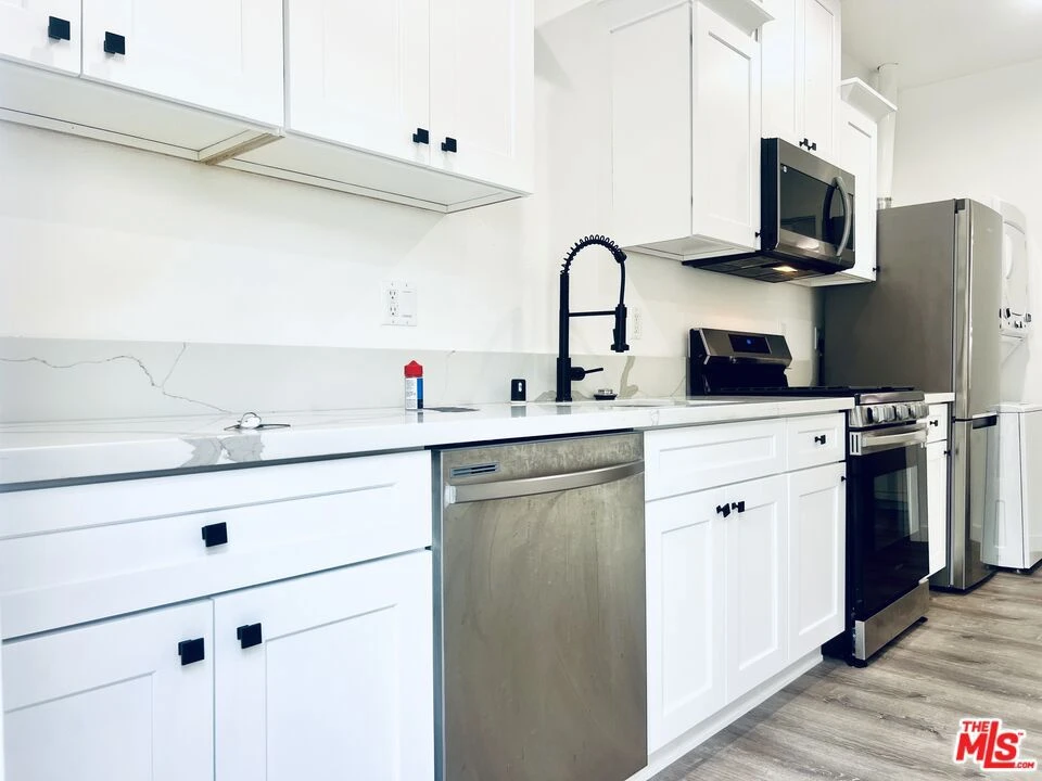Gorgeous one bedroom ADU available very near Pasadena's Theatre District, CalTech and all the great shops and restaurants on So. Lake Ave and the Paseo. Lovely unique complex has been modernized and the ADU was newly constructed last year. Quiet rear unit is small it's fantastic features make it great! Super high ceilings (9ft +) and bright open concept floor plan and a large gated patio for handing out, gardening and your bbq. Finishes include brand new flooring, custom paint and lighting, new windows and blinds. Kitchen has new expansive white quartz countertops, new stainless steel stove, microwave, dishwasher, refrigerator AND stackable Washer + Dryer in unit. Bath has new vanity, new lighting with custom defogging mirror and marble styled tiled shower. Pet friendly, one car driveway parking and additional street parking by permit. Available now!