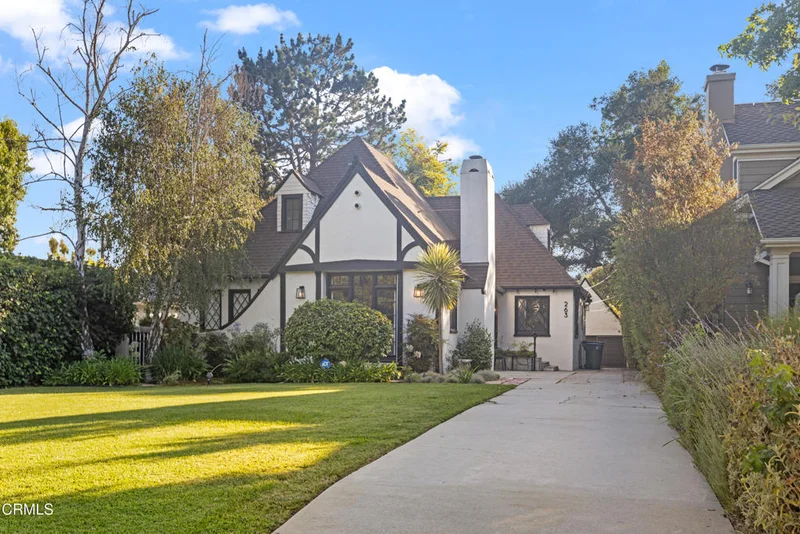 Nestled in the highly sought-after San Rafael neighborhood of Pasadena, 263 San Miguel Road is a timeless 1926 English Tudor residence that blends classic architecture with modern updates. Set on a beautifully landscaped 9,000-square-foot lot, this 3 bedroom, 2.5 bath home offers approximately 2,700 square feet of elegant living space filled with character and natural light. Inside, the formal living room makes a striking first impression with its vaulted wood-beamed ceilings, rich hardwood floors, and a stately fireplace beneath a statement chandelier. Just beyond, a gracious formal dining room with crown molding and tray ceilings opens to a remodeled chef's kitchen featuring granite countertops, stainless steel appliances, a five-burner gas cooktop, and a peninsula with bar seating perfect for everyday meals or entertaining. A cozy den or sitting room sits just off the main living area, ideal for a music room, office, or reading nook, with French doors that lead out to the fully enclosed backyard. Two generously sized bedrooms are located on the main level, alongside two well-appointed hall bathrooms. Upstairs, the primary suite feels like a private retreat with vaulted ceilings, access to a expansive and peaceful patio, and an en-suite bath. Outdoors, the lush backyard offers a tranquil escape with mature landscaping and grassy areas ideal for relaxation, pets, or play. A detached garage and additional driveway parking complete the property. Ideally located on a quiet, tree-lined street in one of Pasadena's most desirable pockets, 263 San Miguel offers convenient access to local schools, parks, the Rose Bowl and the shops and restaurants of Old Town Pasadena. This is a rare opportunity to lease a home that blends historic charm, thoughtful upgrades, and a truly special setting.
