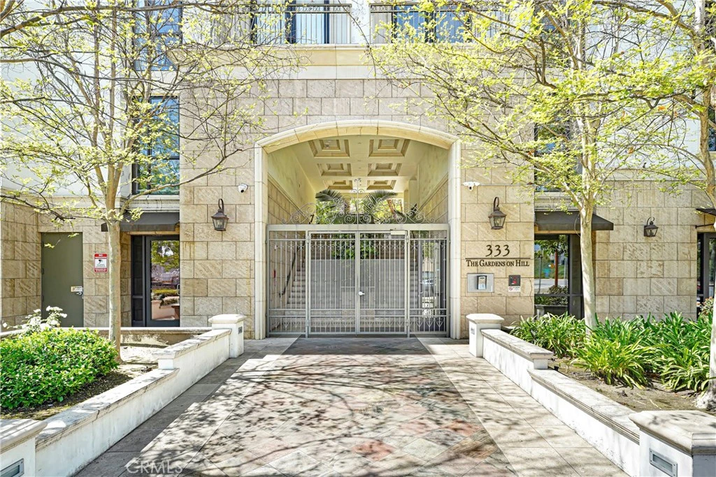 Experience refined living in this elegant 2-bedroom, 2-bath residence at Gardens on Hill, a premier Mediterranean-style community in the heart of Pasadena. From the moment you enter through the impressive Romanesque iron gates and travertine-clad entrance, you’re welcomed into beautifully landscaped courtyards with winding pathways and a striking central pavilion adorned with intricate ironwork. Inside, the home offers a bright and airy living space enhanced by 9-foot ceilings, crown molding, recessed lighting, and a custom 8-foot French door that invites in natural light. A brick accent façade and a beautifully crafted stone fireplace add warmth and architectural character, creating an inviting setting for both everyday living and relaxed entertaining. The gourmet kitchen is thoughtfully designed with granite countertops, stainless steel appliances, and custom maple cabinetry, offering both style and functionality. The primary suite serves as a peaceful retreat, complete with a designer bathroom featuring custom vanity with dual sinks and a spacious walk-in shower. A versatile second bedroom provides flexibility for guests, a home office, a gym, or additional creative space. *some photos are virtually staged* Recent updates include brand new flooring, fresh interior paint, and updated ceiling fans, giving the home a clean, modern feel throughout. Additional highlights include two side-by-side parking spaces and a private storage unit in the garage. The community has also been recently improved with a newer roof and earthquake insurance, offering added peace of mind. Located just moments from the Metro, shopping, the charm of Old Town Pasadena, Pasadena City College, and Cal-Tech, this residence is perfect for discerning buyers seeking luxury, convenience, and the best of Pasadena living.