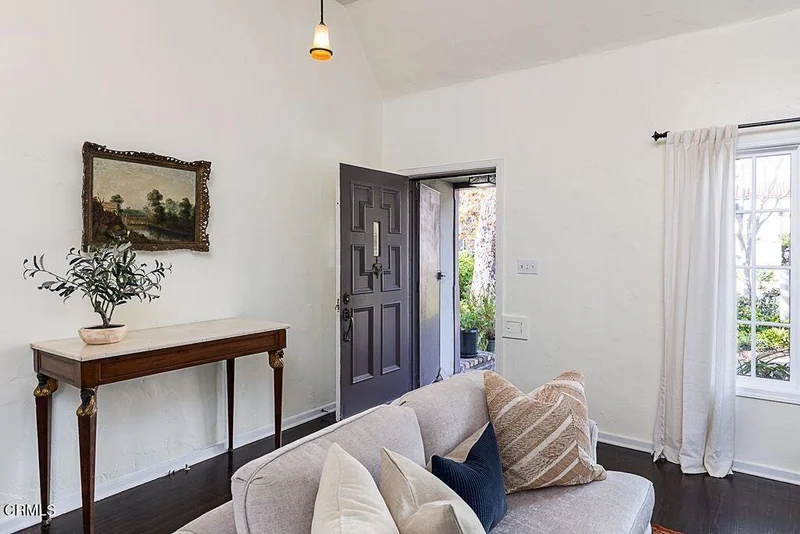 Chapman Woods provides the beautiful backdrop for this delightful 1927 English Revival single-level residence. Meticulously maintained & upgraded for modern living & gracious entertaining, the home blends period character with today's amenities. Surrounded by a private walled garden, the landscaping was designed to offer serene patio & garden views from three sides. Enter through the front gate & be transported to a world of European elegance, complemented by a California-inspired drought-tolerant front garden. The home features double French doors from the dining room, kitchen & second bedroom--inviting indoor-outdoor enjoyment of the east patio & south-facing deck throughout the day. The living room is distinguished by dramatic 11-foot coved ceilings, a gas-log fireplace & multi-pane windows. An arched entry leads to the expansive dining room, complete with a skylight & additional seating area, flowing seamlessly to the east patio--perfect for alfresco dining. Hardwood floors grace many of the rooms. (Prior owner removed the closet in middle bedroom, adding built-ins, creating an inviting home office option with view to the deck; the closet could easily be restored.) Enhancements include dual-pane Pella windows & doors, Hunter Douglas woven blinds, central A/C & custom built-ins. The cook's kitchen, with a bay window, offers high-end stainless-steel appliances plus a breakfast area with double doors opening to the outdoors. An oversized laundry room presents exciting possibilities--create a kitchen/family room, mudroom or design additional storage. The primary suite offers an oversized bathroom & closet. At the rear of the property, a separate bonus room with exposed-beam ceilings, new sliding doors & its own A/C wall unit offers endless flexibility--ideal as a wellness studio, creative space, home office or add a bathroom & create the perfect ADU, plus you still have a two-car garage, equipped with automatic opener + ready for EV installation. Home measurements: 2185 SF + 305 SF bonus room/studio (both taped). Tax Assessor shows 2162 SF. (Buyers to verify to their satisfaction.) With enchanting curb appeal, generous proportions, rich architectural details & thoughtful upgrades, this home offers an opportunity to own a Pasadena Classic, just moments from the Caltech & San Marino neighborhoods + all that Pasadena has to offer. Love where you live...3364 Yorkshire presents an easy place to enjoy privacy & a lock and go lifestyle!
