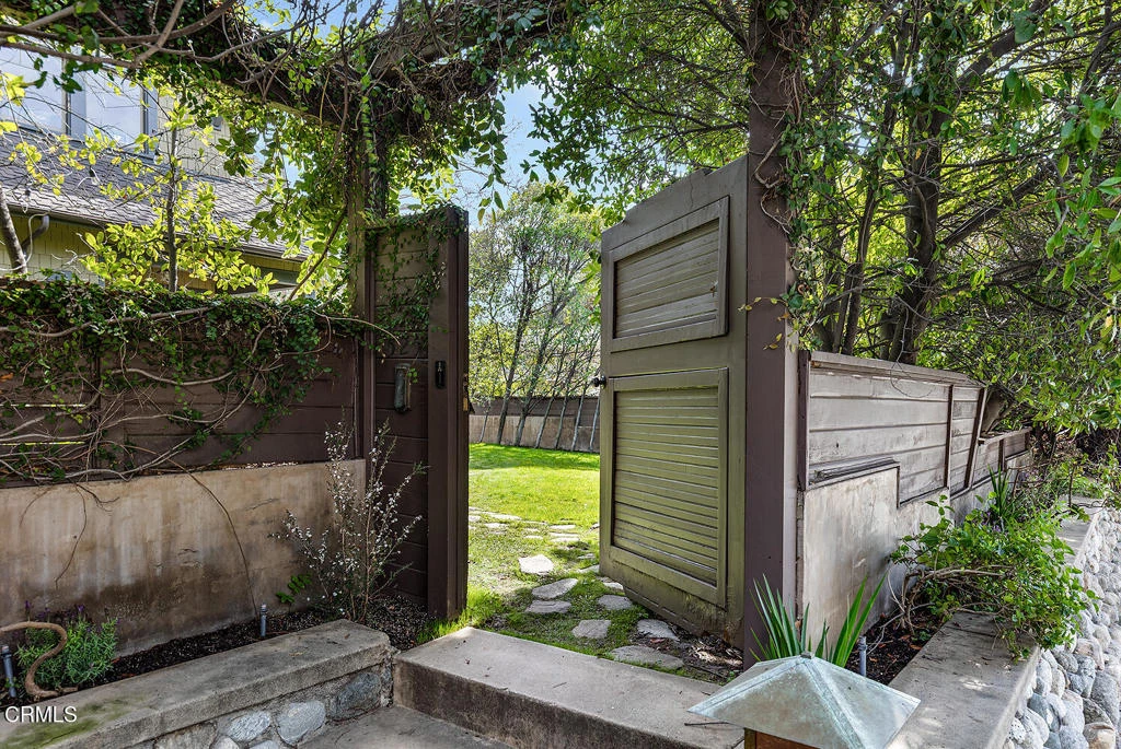 Secluded and private, behind a river rock wall and mature hedges, this 1907 Craftsman located adjacent to historic Madison Heights offers timeless character and high-end updates in a desirable location. The home is quietly introduced by an arbor entry and a handsome gate on Oakland Avenue, which opens to reveal a secret garden. Follow the meandering stone path through a velvety lawn to the generous front porch and stunning solid wood front door. Inside, quality craftsmanship and custom details abound in this restored home, from rich amber-hued hardwood floors to the grand-scale chiseled granite arroyo stone fireplace, a decorative centerpiece befitting the spacious living room. Natural light is a constant here, with beautiful wood casement windows bringing in sunlight and lush green garden views. Expanded and restored by architect William S Long, in 2007, the floor plan flows seamlessly for convenience and ease: the living room leads into a formal dining room, which opens to both a covered deck via french doors, and to a superlative kitchen. Chefs will revel in the 48' Thermador range, warming drawer, double wall ovens and SubZero refrigerator, while design aficionados will enjoy the combination of classic, early 20th-style millwork and fixtures with elegant finishes like natural marble countertops and floors. A convenient mudroom and powder bath complete the public spaces on the ground level. Private spaces are equally well-appointed: the primary suite with walk-in-closet features an en-suite bath with steam shower and separate soaking tub. Upstairs, two additional sizable bedrooms share another updated full bath with a soaking tub and separate shower. The large laundry and bonus storage/linen storage room, plus built-in shelving and desk nook provide value and utility. Lastly, at 388 SF, the garage is large enough for two cars, but the space is finished beautifully and ideal for a den, home office or gym space. Centrally located between Madison Heights, the Playhouse District and South Lake Ave, this home is surrounded by beloved cultural institutions (the Pacific Asia Museum, Caltech and the Huntington, to name a few), with wonderful dining, shopping and architectural sight-seeing just moments from the front door.