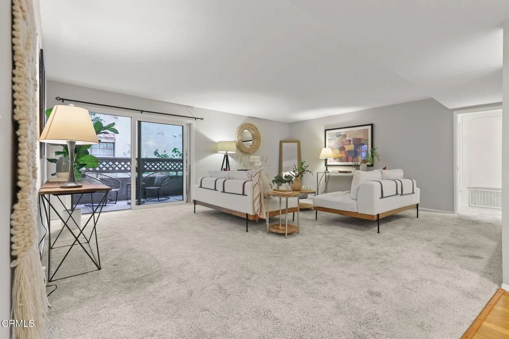 This elegant and spacious single-level condo features two bedrooms, three bathrooms and is ideally located close to Pasadena's vibrant South Lake District. The unit features an expansive living room with a marble fireplace, a dry bar, and custom built-ins. Sliding glass doors open to one of two patios, creating a variety of outdoor seating areas that are ideal for entertaining. A sizable dining area flows seamlessly between the living room and the kitchen. The kitchen offers an abundance of cabinetry, large pantry, a convenient office area, and includes a breakfast nook with a lovely French door that opens to the first patio. The home features two well-appointed bedrooms. The primary suite is spacious, with two closets, an en-suite bathroom and sliding glass doors that open to the second patio. From the main hallway, you access both the second bedroom and a three-quarter bathroom. A convenient powder room for guests is located right off the entry. Additional highlights include an interior laundry area with a side-by-side washer and dryer, lots of storage areas throughout, and two designated parking spaces. The HOA covers water, trash, landscaping, exterior insurance, and there is an earthquake insurance policy. The condo is ideally located close to Caltech, coffee shops, restaurants, and a multitude of grocery stores such as Erewhon, Trader Joe's, and Pavilions. This is the perfect home base to enjoy the very best of Pasadena living--welcome home!