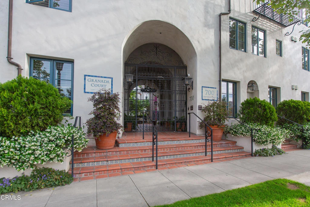 This elegant 1-bedroom, 1.5-bath residence at Granada Court captures timeless Pasadena living in the heart of Playhouse Village. Thoughtfully designed for both comfort and functionality, the home offers a spacious layout, a rare guest powder room, in-unit laundry, and abundant natural light throughout.The well-appointed kitchen, featuring high-end Viking appliances, flows seamlessly into the dining and living areas. The living room features a charming corner fireplace that adds warmth and character, and French doors open to a Juliet-style balcony with views of lush greenery and the San Gabriel Mountains.Additional highlights include secured parking for one vehicle and a generous private storage room (approximately 7' x 10'6') both conveniently accessible via the community elevator.Granada Court is renowned for its beautifully maintained courtyards, tranquil fountains, library, concierge service, and BBQ area, offering a serene, Mediterranean-inspired setting just moments from Pasadena's premier dining, shopping, and entertainment.