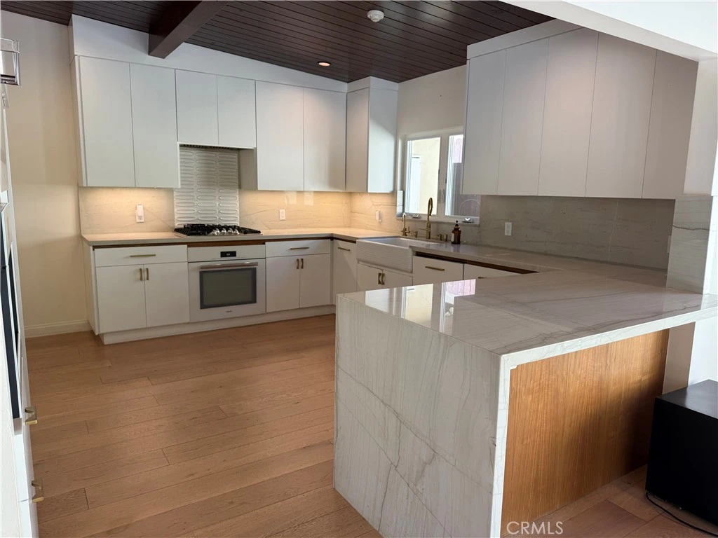 Experience elevated living in this beautifully re-imagined single-story mid-century modern 3-bedroom, 3.5-bathroom residence, where timeless architectural style meets contemporary sophistication in highly desirable Upper Hastings Ranch. Rich hardwood floors flow seamlessly across the open-concept living spaces, complemented by vaulted ceilings throughout, recessed lighting, custom cabinetry, and statement mid-century modern chandeliers that add warmth and architectural character. The living room is highlighted by large windows that flood the space with natural light, creating a bright and welcoming atmosphere. An expansive dining area and inviting den provide versatile spaces for both everyday comfort and entertaining, while integrated Sonos surround sound enhances the ambiance throughout the home. The gourmet cook’s kitchen is a true showpiece, featuring high-end Miele appliances, including a sleek flush-mounted dishwasher. A striking quartzite island anchors the space, perfect for gathering, while a spacious walk-in pantry provides exceptional storage. A designer powder room wrapped in Missoni wallpaper and a secondary bathroom with LED vanity mirrors add bold, modern statements for guests and family alike. The luxurious master suite features a large walk-in closet with a marble countertop island, creating a boutique-style dressing experience. The backyard features Trex decking, ideal for entertaining or relaxing in style. Additional highlights include motorized Hunter Douglas blinds, a Nest wireless thermostat, dual-sided fireplace, and ample garage storage. This exceptional single-story mid-century modern home combines vaulted ceilings, timeless style, elevated finishes, smart-home technology, and outdoor luxury — a rare rental opportunity in sought-after Upper Hastings Ranch.