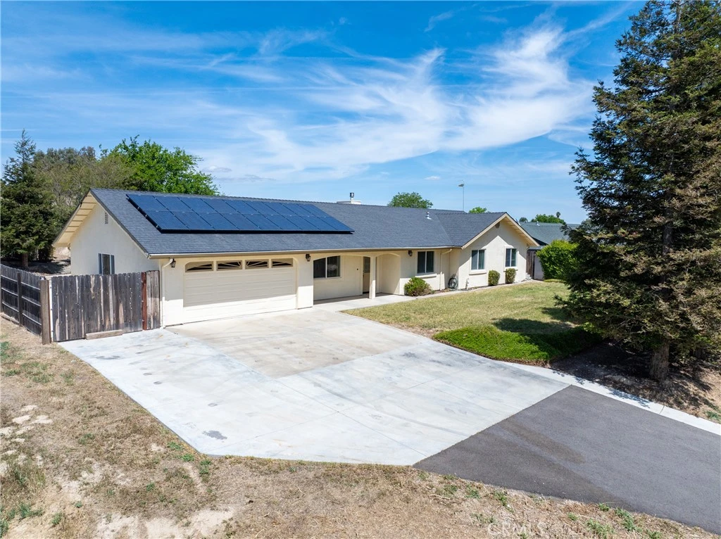 Country Road... Take Me Home! You're not going to want to miss this fantastic four bedroom, two and a half bath single-level home, set at the back of a sprawling one-acre parcel. Mature landscape and lovely views surround the home, which includes a great backyard with lots of concrete patio area (including an area pre-plumbed for an outdoor kitchen), and a large lawn for children to play. The backyard is completely fenced for pets as well. Inside, you'll find vaulted volume ceilings, recessed lighting, and a large great room accented by a gas fireplace. There is also a formal dining room (could be a den?!), as well as an informal dining and breakfast bar adjacent to the thoughtfully designed and well-appointed kitchen. A large laundry/mud room and adjacent half bath are conveniently located between the finished two car garage and the kitchen. Storage in this home is abundant, with two walk-in closets, two hall closets, linen cabinets in the two full baths and even an large attic area over the garage with a pull-down ladder for convenient access. A roof-mounted solar array keeps PG&E costs at a minimum, and paved roads lead you from your garage all the way into town. Be sure to ask about the $7,500 decorator allowance, which can be used toward updating flooring, paint, or even buyer closing costs. If the Country Life has been calling, you won't want to miss this call!