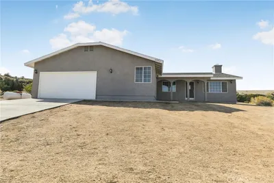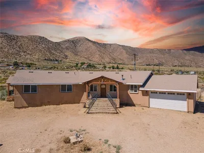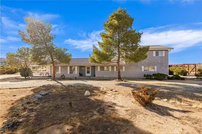 Nestled amidst the captivating High Desert Hills, just adjacent to the Angeles National Forest and a renowned national park, lies this approximately 2.5-acre equestrian property at 29243 Piani Road in Pearblossom. This modern ranch home offers over 2,000 square feet of living space, designed to capture breathtaking sunsets from the elevated position of the back of the house that faces west, showcasing a serene retreat in a stunning setting. The home encompasses three bedrooms, a versatile office/flex room, and two bathrooms, each with double sinks and bathtubs. Designed for comfort and practicality, it features vaulted ceilings and an array of custom finishes, including brick and wood floors in the kitchen and dining room, complemented by Turkish Travertine in the Venetian Pattern in other living areas. Large windows fill the space with natural light and showcase the picturesque views. A separate outside entrance to the primary bedroom and the dining room, as well as a utility room entrance, underscores the thoughtful design of this home. The 2-car attached garage provides ample storage space, with additional storage available in the attic and a large utility room pantry. Say goodbye to high electricity and water bills, as this home is powered by a high-quality paid-off solar system with 26 panels installed by Solar Optimum in 2022, and water sourced from its own well and propane for gas. In addition to central heating, this home is equipped with a whole-house evaporative cooler, a highly energy-efficient alternative to traditional air conditioning. The dining room also features a wood-burning stove for cozy winter evenings. The private, fully fenced lot, with its 330-foot frontage on Piani Road, is complemented by a wooden ranch gate, creating an impressive entrance to this serene retreat. With RV hookups and ample outdoor storage, this property accommodates a variety of needs, whether for ranch living or leisure. Equestrian facilities abound, with a 120' x 96' arena, a 50' round-pen, and a spacious hay barn capable of accommodating a full semi-truck load. The property supports multiple horse stalls with water and electricity, ensuring your equine companions enjoy optimal care. There is also a Nelson Automatic waterer in the pasture area. Beyond its equestrian amenities, the property is steeped in nature, providing direct access to miles of trails and seasonal creeks. It is conveniently located approximately five miles from local amenities, including the USPS, LA County Fire Department, and Pearblossom Park. Embrace the opportunity to own this equestrian property, where natural beauty, modern comforts, and horse-friendly facilities converge. Whether you are an avid equestrian or seeking a tranquil retreat, this home offers a unique chance to live in a truly stunning setting.