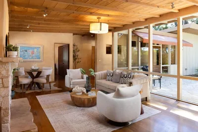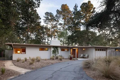 Privately positioned in Pebble Beach and backing to open space, this refined single level mid-century residence offers a rare sense of openness, light, and tranquility. Floor to ceiling windows in the living room and hallway capture abundant south and west facing natural light while framing the surrounding landscape. The 1,689 sq ft home features 3 bedrooms and 2 bathrooms with wood and tile flooring and radiant floor heating throughout. The living room is centered around a gas log fireplace and opens seamlessly toward the rear patio, creating an effortless indoor-outdoor flow. Set on a 12,060 sq ft lot, the expansive backyard opens directly to Pebble Beach open space, creating the feeling of a much larger private setting. A stone patio and striking standalone wood burning outdoor fireplace establish an inviting environment for outdoor living and entertaining. Additional features include a stucco exterior, attached one-car garage, and convenient access to the Pebble Beach Highway 1 gate for easy entry to the Monterey Peninsula.