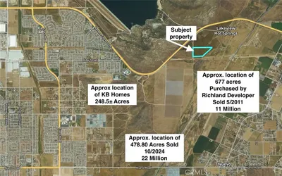 This parcel of approximately 25.86 acres represents a unique investment opportunity. With Multi-Use Zoning and an ideal location, this property is perfectly positioned for future growth. The terrain is flat with a southern slope, offering excellent developmental potential. This lot is right off Ramona Expressway, which will be further expanded with additional interchanges starting in Spring 2025, is expected to become a major thoroughfare. This development aligns with projections indicating that the Inland Empire will be one of the fastest-growing regions in the country. Prospective investors are encouraged to consider this property before surrounding developments drive up prices (see specific plan map). Currently, market conditions indicate that properties in this area are scarce, adding to the attractiveness of this investment. Recent transactions include KB Homes' land purchase nearby and a sale valued at $11 million in this vicinity. The site benefits from a water line along Ramona Expressway, with planned extensions down Pozos Road. Nearby developments, such as the Stoneridge Specific Plan, are nearing approval stages (see www.stoneridgenuevo.com for more details). Additionally, the World Logistics Center is resuming construction, promising thousands of new jobs in the region (see www.theworldlogisticscenter.com for further information). This property offers significant potential and is competitively priced for a quick sale. Do not miss this rare opportunity to invest in a rapidly developing area!