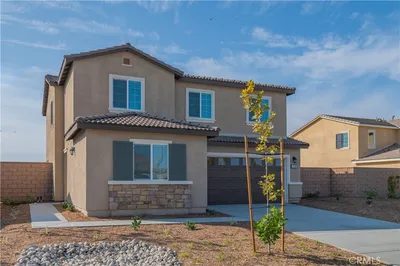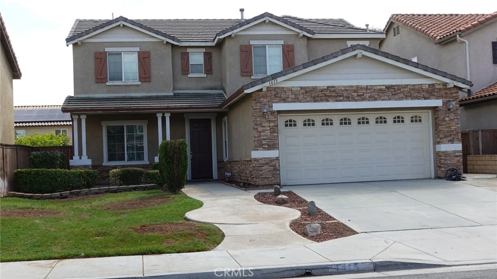 Charming two-story home offering 3 bedrooms plus a den and 2.5 bathrooms, located in the city of Perris. Enter through the inviting front porch into the formal living room. The home has been newly painted throughout and features new flooring in the kitchen, formal dining room, and family room, with plenty of bright and airy windows bringing in natural light.The kitchen showcases granite countertops, new flooring, a double oven, new refrigerator, dishwasher, stainless steel double sink, and microwave. A double sliding glass door leads to the backyard with a newer vinyl fence. The home also offers an upgraded downstairs bathroom and a convenient laundry room.Upstairs includes a spacious bonus room with hardwood flooring, two secondary bedrooms with a shared bathroom, and a hallway leading to the primary suite. The main bedroom is open and spacious, featuring lots of wood work, dual pan windows, a private en-suite bathroom, jacuzzi tub and, a large walk-in closet with build-in shelving.The professionally landscaped front and backyard include a large covered patio with ceramic tile flooring, brand new vinyl fence—perfect for outdoor entertaining. Additional highlights include a two-car attached garage with custom shelving. Conveniently located near parks, the 215 freeway, schools, and shopping centers.
