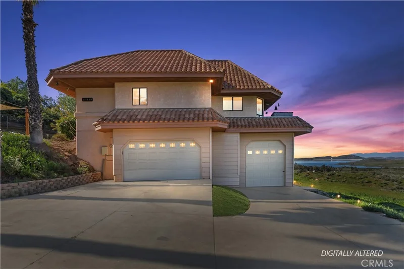 Get away from it all—enjoy peaceful rural living just 15 minutes from the city. This custom-built home, constructed in 1989, sits on over two acres of land and offers breathtaking panoramic views that stretch for miles. An impressive 80-foot wraparound deck provides the perfect vantage point to enjoy sweeping views of Lake Mathews, mountain vistas and sparkling city lights. Designed as a true two-homes-in-one, the main level features three bedrooms, two bathrooms, a spacious family room, kitchen and a combined living and dining area. The lower level has its own private entrance and includes two bedrooms, a beautifully appointed bathroom with step-in shower, and a small kitchen—ideal for multi-generational living, a college student, guests, or rental income potential. The main kitchen is a chef’s dream, boasting a large island with built-in granite cutting surface, stainless steel appliances, cooktop stove, wine cooler, triple-well sink, six integrated cutting boards, walk-in pantry, breakfast bar seating, and a charming bay window overlooking the lake—perfect for enjoying the view while you cook. The expansive family room offers a marble fireplace, built-in nook seating, and a coffered ceiling accented with backlit crown molding. Additional highlights includes 3194 Sq/Ft of living space, solar, pocket doors, LVT flooring throughout, 9-foot ceilings, water filtration and softener system, tankless water heater, a 90 Sq/Ft vault room ideal for valuables or a wine cellar, built-in cabinetry, sconces, ceiling fans, and a walk-in closet. The exceptional two-acre lot provides ample space for RVs, boats, and toys, over 1400 Sq/Ft of garage space to include a 30' x 12 RV/toy garage with 12-foot ceilings, and a oversized garage with 220-volt outlets. The property features a very low tax rate, no homeowners association, and is located within the Corona School District, serving Santiago High School. A truly unique property with endless possibilities—privacy, flexibility, and views you have to see to believe.