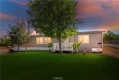 Charming country property on 3.07 acres, perfect for someone seeking tranquility and space. 4 bedrooms + a BIG office, 3 baths, equipped with two 3-ton HVAC systems to maintain a comfortable temp inside. Two newer 40 gallon water heaters for ample water supply. It operates on its own WELL and Septic. The primary bedroom is spacious with a HUGE walk in closet & walk in shower in the bathroom + a soaking tub. 5th bedroom is currently the office. Two master bedrooms with full private bathrooms. The large family room is a highlight, offering plenty of room for entertaining and family get togethers'. Cozy fireplace adds ambiance to be enjoyed by the dining area as well. The front porch offers the perfect spot to enjoy sunrise views. You can also step out the rear double slider door to an outdoor sitting area under the shade tree, ideal for feeding the hummingbirds and bunnies. Several areas created as retreats to be peaceful with nature. The property is fully fenced and has 2 gates at the entrance providing security and privacy. The rural setting landscape includes big rocks, boulders, and pepper trees. There is a rustic country feel and views of the mountains and city lights. Conveniently close to town and freeways. Near open BLM land for biking, hiking, horseback riding, owl watching, riding motorcycles and quads "on" the property. Some days you get to watch the local Skydiving. Low taxes.