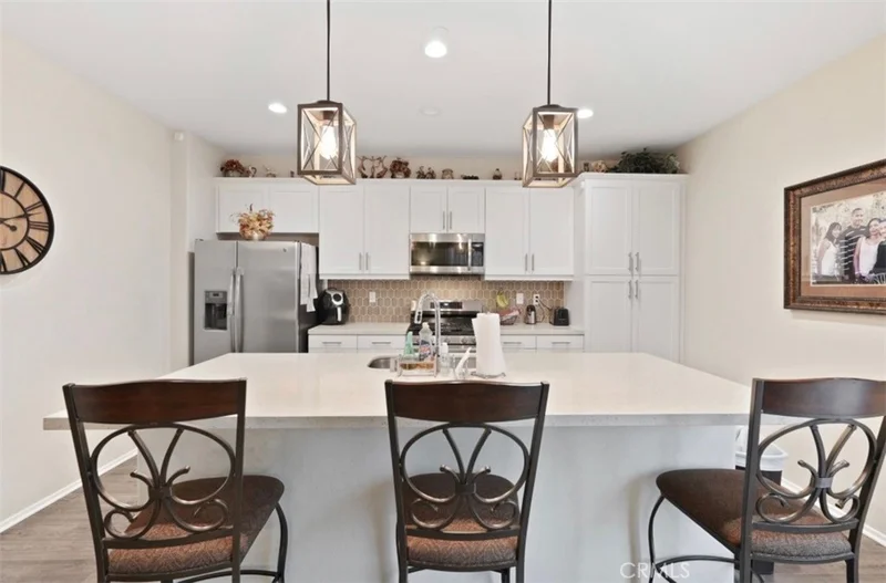 Welcome to this beautifully maintained three-bedroom, two-and-a-half bath home, built in 2022, and located in a desirable gated community in Perris. The open-concept kitchen features white cabinetry, quartz countertops, and stainless-steel appliances, seamlessly flowing into the main living area—perfect for everyday living and entertaining. The spacious primary suite offers a relaxing retreat with a walk-in shower and dual sinks. Additional highlights include an indoor laundry room, attached garage, and owned/leased solar for energy efficiency. Residents enjoy resort-style community amenities, including a pool and spa, park, clubhouse, and outdoor cooking and barbecue areas. This newer home offers comfort, convenience, and a wonderful community lifestyle—don’t miss this opportunity!