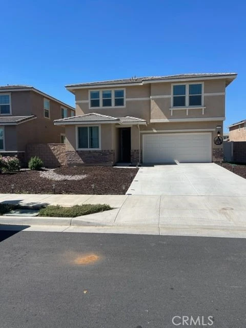 Welcome to this beautifully maintained newer home located in a desirable neighborhood of Perris! Built in 2021, this spacious 4-bedroom, 2.5-bath residence offers modern living with a functional and inviting layout. Step inside to find a bright and open floor plan, perfect for both everyday living and entertaining. The kitchen seamlessly flows into the living and dining areas, creating a warm and connected space for gatherings. All bedrooms are generously sized, with a comfortable primary suite that includes its own private bathroom. This home offers the benefits of newer construction—energy efficiency, updated features, and low maintenance—giving you peace of mind and comfort.