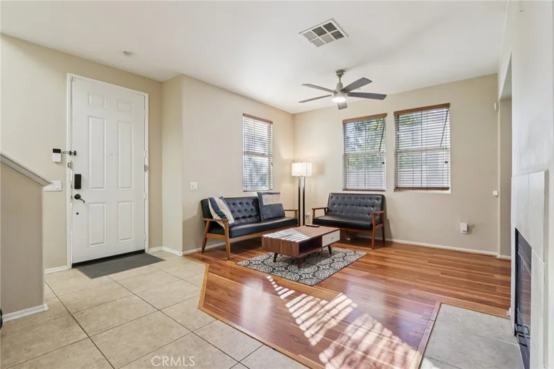 Desirable end-unit condo filled with natural light, offering a functional layout, private outdoor space, and access to beautiful community amenities. This well-maintained home features a welcoming living room highlighted by a tile-framed fireplace and beautiful wood and tile flooring, with comfortable carpeting upstairs. The open kitchen and dining area create an easy flow for everyday living and entertaining. A sliding glass door opens to a spacious concrete patio, providing a low-maintenance outdoor space ideal for BBQs, alfresco dining, or relaxing. The kitchen is outfitted with stainless steel appliances, a pantry, and is conveniently located near the laundry room with direct access to the attached two-car garage. The garage comes equipped with an EV charging port (J1772/NEMA 14-50). The main level includes a bedroom and full bathroom, perfect for guests or flexible living needs. Upstairs, you’ll find two additional bedrooms and two bathrooms, including a spacious primary suite with a walk-in closet and an en suite bathroom featuring a dual-sink vanity, soaking tub, and separate shower. There's also an office located off the kitchen. Located in the Amelia Square community, residents enjoy beautifully maintained grounds and outstanding amenities, including a pool, spa, tennis court, playground, and picnic areas. This light-filled end unit combines comfort, convenience, and community living in an excellent location.