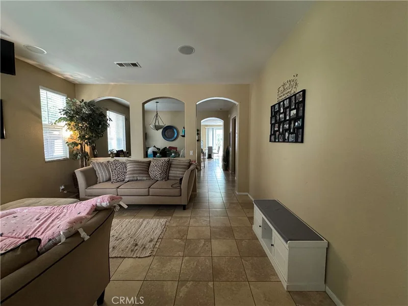 Welcome to 3613 Whieldon Dr, a 5-bedroom, 3-bathroom home nestled in Perris, CA. Ideally situated in the Villages of Avalon neighborhood within walking distance to schools and parks , this home offers 2,802 sq ft of living space. This two-story gem is perfect for growing families or homeowners seeking extra space and comfort. As you enter, you're greeted by an open arched hallway connecting the family room, dining room, and kitchen which effortlessly showcases a familial ambiance with wood cabinets and a kitchen island. The main floor additionally houses one bedroom, one bathroom, and access to the two-car garage. Upstairs, you'll find four additional bedrooms including a generous primary suite featuring two closets - including a spacious walk-in closet - an en-suite bathroom featuring dual vanities, a soaking tub, seprate shower, and island. Additionally, enjoy close proximity to Lake Perris and all it has to offer including an 8 minute drive to Bernasconi Beach and easy access to the Lake Perris Loop Trail.