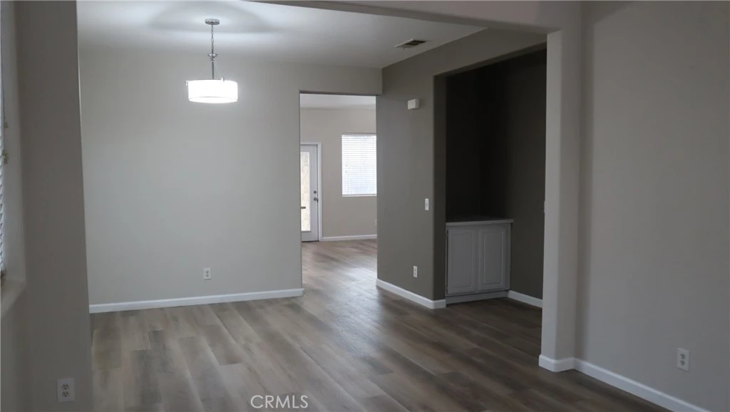 This wonderful residence is near Lake Perris, known for year-round water sports, including boating, fishing, and much more! Spacious floor plan with a primary bedroom with private bathroom, 2 secondary bedrooms and 1.5 bathrooms, family room, features a large kitchen with island. Recently remolded with fresh paint, new appliances in the kitchen, quartz counter tops, luxury vinyl flooring throughout the home, built-in inlay in family room for a television, and a fireplace. It is conveniently located near shopping centers, interstate 215, Lake Perris, and fine dining.