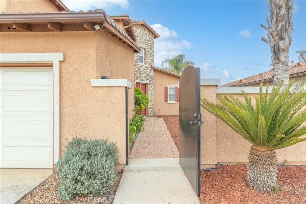 Charming two-story home nestled in the highly desirable Monument Ranch community, offering scenic foothill views. This spacious residence features 4 bedrooms, 3 bathrooms, and a 3-car garage, with 2,305 sq. ft. of living space on a 7,000 sq. ft. lot. Enter through a large gated courtyard and step into a functional open-concept floor plan. To the left is the formal dining room, while just ahead you’ll find the inviting family room seamlessly connected to the kitchen. The family room features tile flooring, 9-foot ceilings, a ceiling fan, ample space for large gatherings, and a cozy fireplace .The newly updated kitchen showcases white cabinetry, white quartz countertops, and a decorative white backsplash. Additional highlights include a kitchen island, wine refrigerator, stainless steel appliances, abundant cabinetry, and stylish lighting that brings the space together beautifully. The kitchen flows into a spacious breakfast nook, perfect for everyday dining. The main level also includes a private laundry room, a full bathroom, and a bedroom—ideal for guests or multi-generational living. upstairs, you’ll find a generous loft area that can be used as a living room, game room, office, or exercise space. Two additional bedrooms and a full bathroom are also located upstairs. The primary suite features a ceiling fan, dual sinks, a soaking tub, a separate shower, and a large walk-in closet. The home offers a combination of carpet, laminate, and tile flooring throughout, along with light gray interior paint and window coverings .The backyard is perfect for entertaining and enjoying the outdoors, featuring a flagstone patio, gazebo, palm trees, grass area, and beautiful foothill views. Conveniently located near the 215 freeway and close to schools, parks, restaurants, and shopping centers. Don’t miss this opportunity—priced to sell. Schedule your showing today!