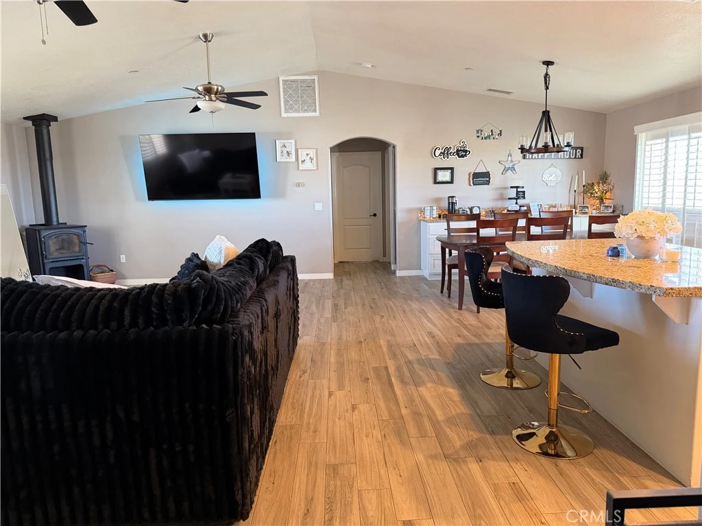 Welcome to this beautiful 3 bedroom 2 bathroom single-story home that offers 1820 sq ft of open-concept living - perfect for those seeking space, privacy, and functionality!! Rural living just minutes from paved roads to beautiful mountain views and plenty of open space. This well-maintained, turnkey, move-in-ready home sits on over 1+ acre of land, fully fenced with 16-foot gate, offering the perfect space for your horses, animals, RV and toys!!. The open concept living room features a cozy wood-burning stove for those cold nights, updated kitchen offering large pantry and large buffet with ample storage. While shutters throughout enhance style and efficiency. Home also offers 220V hookup in the 2 car garage. Conveniently located near Highway 138 for easy commuting, this property is perfect for relaxing evenings and outdoor entertaining. This property has it all!!! Make this home yours today!!!
