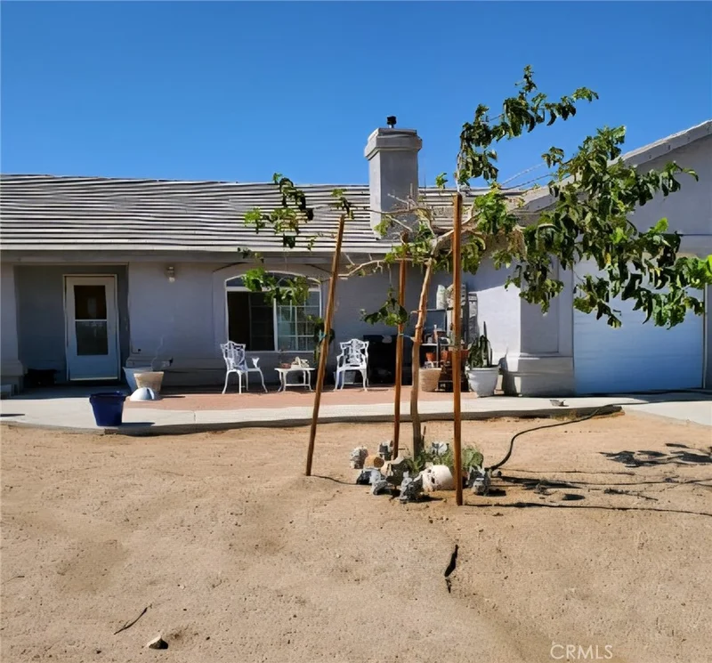 Welcome home to this charming 3-bedroom, 2-bath residence nestled on a peaceful country road where the dirt meets the skyline! Originally part of a 5-acre lot, the property has been thoughtfully subdivided into two separate 2.5-acre parcels, each with its own utilities and subject to recordation. Price includes both parcels. The home is ideally positioned at the rear of the property, offering maximum privacy and providing ample space for animals, recreational vehicles, or hobbies. With 1,806 square feet of living space, this home features robust 2x6 construction, tile flooring, and an open-concept layout flowing seamlessly into the kitchen. The formal dining area is ideal for gatherings, and dual-paned windows, paired with extra insulation, ensure year-round comfort during both hot summers and cool winters. Retreat to the expansive master bedroom, which boasts a whirlpool tub, a separate shower, and a massive walk-in closet. Additional highlights include a spacious 3-car garage and convenient access from two separate roads.