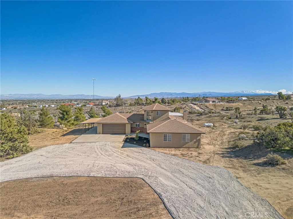 MAJOR PRICE REDUCTION! Experience the extraordinary in this breathtaking ranch-style sanctuary, set on 3.34 panoramic acres with unrivaled 360° views stretching across the Mojave Desert to the majestic San Gabriel Mountains. Infused with the perfect blend of rustic charm and modern luxury, this home has been transformed inside and out—featuring fresh paint, gleaming quartz countertops, designer cabinetry, and brand-new stainless steel appliances that bring a refined, contemporary edge to every space. Step inside and feel the energy of bright, elevated living with recessed lighting, stylish ceiling fans, and stunning updates throughout. Gather around the living room’s inviting fireplace, or design a dramatic rustic escape in the family room that showcases a beautiful new wood-burning stove. Ascend the striking spiral staircase to the home’s show-stopping feature—an enchanting turret-style bonus room that rises above the landscape, offering a rare, awe-inspiring vantage point for taking in the endless vistas. The bathrooms have been exquisitely remodeled, blending sophistication with comfort. Outside, the property delivers just as much impact, boasting new chain-link fencing with dual entrances, drought-tolerant landscaping, and limitless space to shape your ultimate desert retreat. From its elevated position, this home offers spectacular sunrises and spellbinding sunsets, painting the horizon with breathtaking color displays that must be seen to be believed. Let this remarkable property become your private desert escape—where every window frames a masterpiece and every evening feels like a retreat. Whether you dream of stargazing under endless night skies, hosting unforgettable gatherings against a backdrop of mountain silhouettes, or simply savoring quiet mornings with views that stretch for miles, this home delivers an atmosphere unlike anything else. With room to expand, create, and breathe, the possibilities are as vast as the landscape itself. Immerse yourself in the magic of wide-open spaces, dramatic scenery, and a home that truly elevates the art of desert living. This is more than a home—it’s a destination. A dramatic desert haven where space, beauty, and unmatched views come together in perfect harmony.