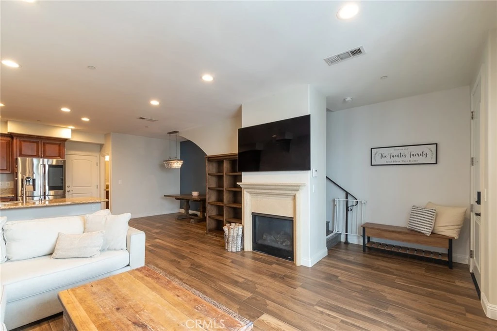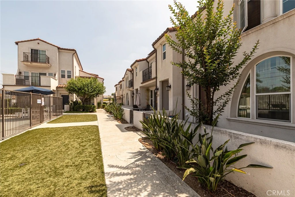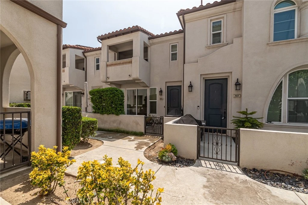 BACK ON ON THE MARKET. Stunning Mediterranean Condo - 3 bedrooms , 3 bathrooms (1 downstairs), 1,473 sq. ft. in a gated community. Built in 2015, this home boasts upgraded flooring, a gourmet kitchen with stainless steel appliances, and a cozy fireplace in living room. STOVE, REFRIGERATOR, WASHER, DRYER AND BEVERAGE COOLER INCLUDED with no warranties. Two balconies in upstairs bedrooms. The primary suite features an enclosed balcony with great view of the pool and dual walk-in closets. Built in cabinets in laundry closet. SOLAR PANELS (Seller Owned) keeps electrical bills low. TANKLESS WATER HEATER and attached two-car garage. 11 miles to Downtown LA. Prime location near parks, shopping, and freeways. This gem offers luxury and convenience. It’s perfect for families or single professionals. Great price for a great home.! See 3D tour.