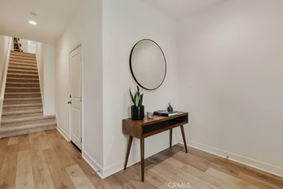 Welcome to 7686 Sunflower Dr, a modern & move in ready 2 bedroom, 2.5 bath front facing townhome built in 2018. This contemporary tri-level residence offers the perfect blend of style, efficiency & low-maintenance living. Thoughtfully designed, the home features an open-concept living area filled w/ abundant natural light, custom window treatments & a spacious kitchen complete w/ quartz countertops, stainless steel GE appliances & an oversized center island, ideal for entertaining or everyday living. The seamless flow between the kitchen, dining & living areas creates a bright & inviting atmosphere. Upstairs, you’ll find two primary bedrooms, both w/ en-suite bathrooms & walk in closets. The larger suite offers an oversized bathroom w/ a spacious shower, while the second bathroom includes a tub. Additional highlights include a paid off solar panel system for energy efficiency & reduced utility costs, an attached 2-car tandem garage w/ direct access & extra storage, outdoor balcony off the living room, indoor laundry w/ a newer stackable washer/dryer, custom vinyl flooring throughout & newer carpet on the stairs. This stylish home offers modern comfort, thoughtful upgrades & convenient living in a desirable Pico Rivera location.