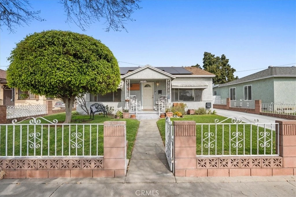 Charming 2-bedroom, 1-bath home in a well-maintained Pico Rivera neighborhood. Thoughtfully updated with a new roof, solar panels, and a new AC unit for year-round comfort. The bathroom has been renovated, good size two car garage down the long gated driveway with electronic opener. The property includes a recently built, electrified shed for workshop or storage use. Lovely, low-maintenance backyard with spa and several fruit trees—perfect for relaxing or entertaining. Comfortable front porch to enjoy those cool evenings or early morning coffee. Solar panels can be paid for at the close of escrow by the seller or payments are assumable. Owners did a great job on these owned solar panels an only pay basic connection fees to Edison. The solar panels and Tesla battery handle the power production and usage.