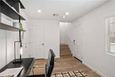 NEW CONSTRUCTION, MOVE IN READY! This three-story residence offers approximately 1,680 sq ft of thoughtfully designed living space with 3 bedrooms, 3 baths, and a 2-car garage — perfect for modern family living. Step inside to an open-concept layout that seamlessly connects the living, dining, and kitchen areas. The eat-in kitchen boasts a center island, walk-in pantry, and abundant storage, creating an ideal space for everyday life and entertaining. A versatile first-floor den provides a quiet retreat or flexible home office space. Upstairs, enjoy 9-foot ceilings, plenty of natural light, and an upstairs laundry room for everyday convenience. The spacious primary suite includes a walk-in closet and well-appointed bath, while additional bedrooms deliver comfort and privacy for family or guests. Built with energy efficiency in mind, this ENERGY STAR® certified home features low-E windows, a smart thermostat, and other sustainable design elements that help reduce utility costs. Located in a gated community with convenient access to major freeways, nearby schools, dining, shopping, and outdoor recreation. This home offers a perfect blend of comfort, style, and location — with the added benefit of personalizing your home from the ground up. PROFESSIONAL PHOTOS TO FOLLOW, EXTERIOR AND INTERIOR FINISHES MAY VARY