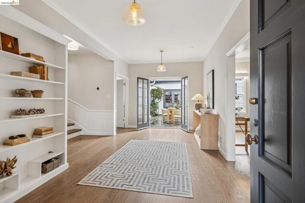 This exceptional Piedmont compound on nearly a third of an acre offers rare scale, privacy, and timeless elegance. Lush landscaped grounds, mature fruit trees, and a breathtaking 100-year-old vine-covered pergola frame a level lawn—an extraordinary backdrop for refined entertaining and relaxed California living. The updated three bedroom main residence blends architectural character with thoughtful modern upgrades. Each bedroom features an ensuite bath, including the serene primary retreat with a fully renovated spa-like bath wrapped in honed marble tile. The expansive living room, graced with French doors out to the pergola, and the grand dining room, that opens to a sunlit patio, provide seamless indoor-outdoor entertaining. A sun-filled den with inviting window seat and built-in bookcase offers a cozy setting for game nights or quiet enjoyment. The Carriage house includes a spacious 2 bed, 1 bath apartment with updated kitchen, plus a separate studio/office below. You will be awed by the rare 9-car redwood garage with original service pit. Just 2 blocks to Beach Elementary School, pickle ball courts, a dog park and a block from the Morcom Rose Garden with public transit, freeway access and the shops and restaurants along Piedmont Avenue close by, this location can't be beat.