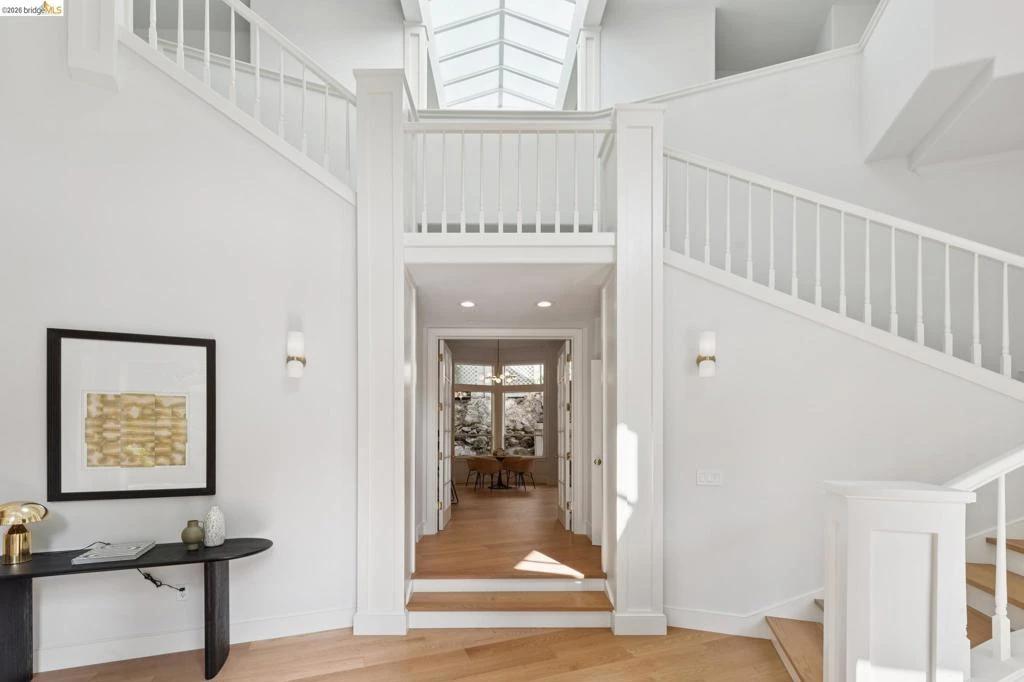 Located on a quiet cul-de-sac, 23 Valant Place offers comfort, scale, and versatility in this impressive 4-bedroom, 3.5-bath contemporary home built in 1993. Generous proportions and soaring ceilings throughout, makes this home perfect for everyday living. Enjoy elegant entertaining in the formal living and dining rooms with a cozy fireplace. The expansive eat-in kitchen and family room with fireplace is the heart of the home. The main level features an additional family room, a convenient bedroom and full bath, plus a powder room. Upstairs, the spacious primary suite offers two walk-in closets and a well-appointed en suite bath. A nearby family room or office area has another fireplace separating the primary and two additional bedrooms, a full bath, study area, and two oversized storage closets. Additional highlights include a two-car garage with lift, and solar power and Tesla battery. Ideally located in Piedmont with top-rated schools and easy access to Park Boulevard, Montclair and Lakeshore shopping, dining, and commuter options.