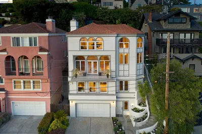 This exceptional six-bedroom estate and detached cottage exemplify the best of the Piedmont lifestyle. Located near top-rated K-12 schools, verdant parks, and the newly re-opened community pool, this 1907 home blends historic nostalgia with a masterfully updated floorplan. Built with original stone from the Rockridge quarry, the residence offers an elegant yet comfortable flow ideal for modern living. The entry foyer leads to gracious spaces with soaring ceilings and a grand central staircase. At the heart of the home, the modern epicurean kitchen and family great room feature professional appliances, a butler’s pantry, and an expansive island. Accordion glass doors create a seamless transition to a patio, hot tub, and lush lawns—perfect for large-scale entertaining or quiet afternoons. The main level also hosts a formal living room with one of the home’s four fireplaces, a den, and a large library/billiards room. West-facing windows capture stunning sunsets over a garden filled with citrus, roses, and fruit trees. The upper level offers four ensuite bedrooms. The primary suite enjoys views of Oakland, San Francisco, and the Bay, while two additional bedrooms feature French doors leading to a copper-inlaid balcony. A large attic provides potential for an additional 1,000+ square feet of development. The lower level serves as a entertainment hub, featuring a historic bar (a former speakeasy?) with a wood-burning fireplace and a climate-controlled wine room. This level also includes a fifth ensuite bedroom with its own kitchen and laundry, ideal for guests. To the east, a light-filled detached two-bedroom cottage sits above a three-car garage. Equipped with its own heating, hot water, and laundry. Two sets of French doors lead to a sunny and cheerful deck.